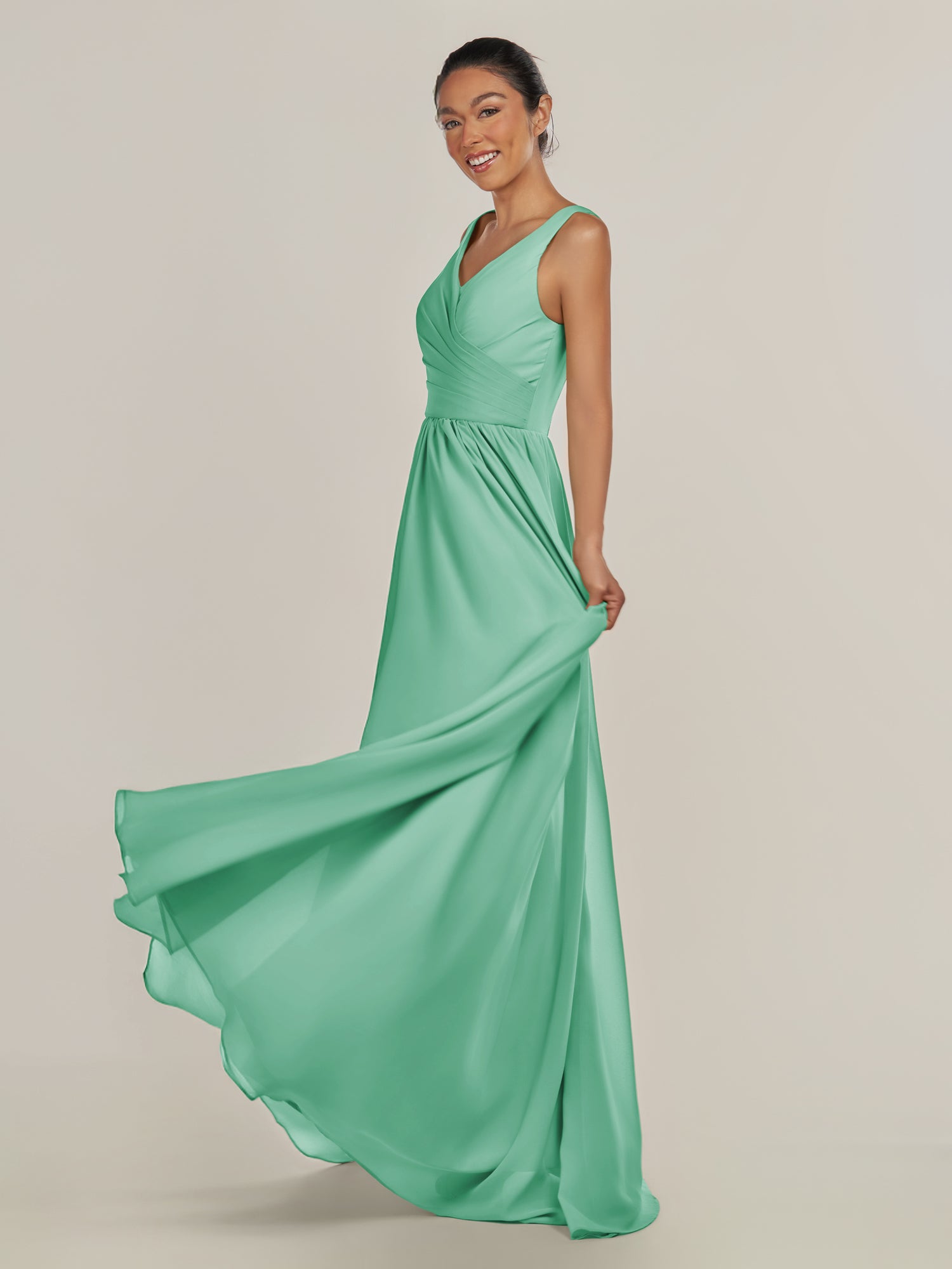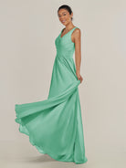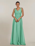 Cova | Turquoise - A Line Chiffon V Neck Long Bridesmaid Dress with Slit