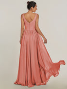 Cova | Wild Rose - A Line Chiffon V Neck Long Bridesmaid Dress with Slit
