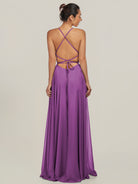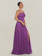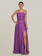 Dena | Amethyst - A Line Chiffon Spaghetti Straps Long Bridesmaid Dress with Slit