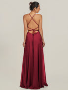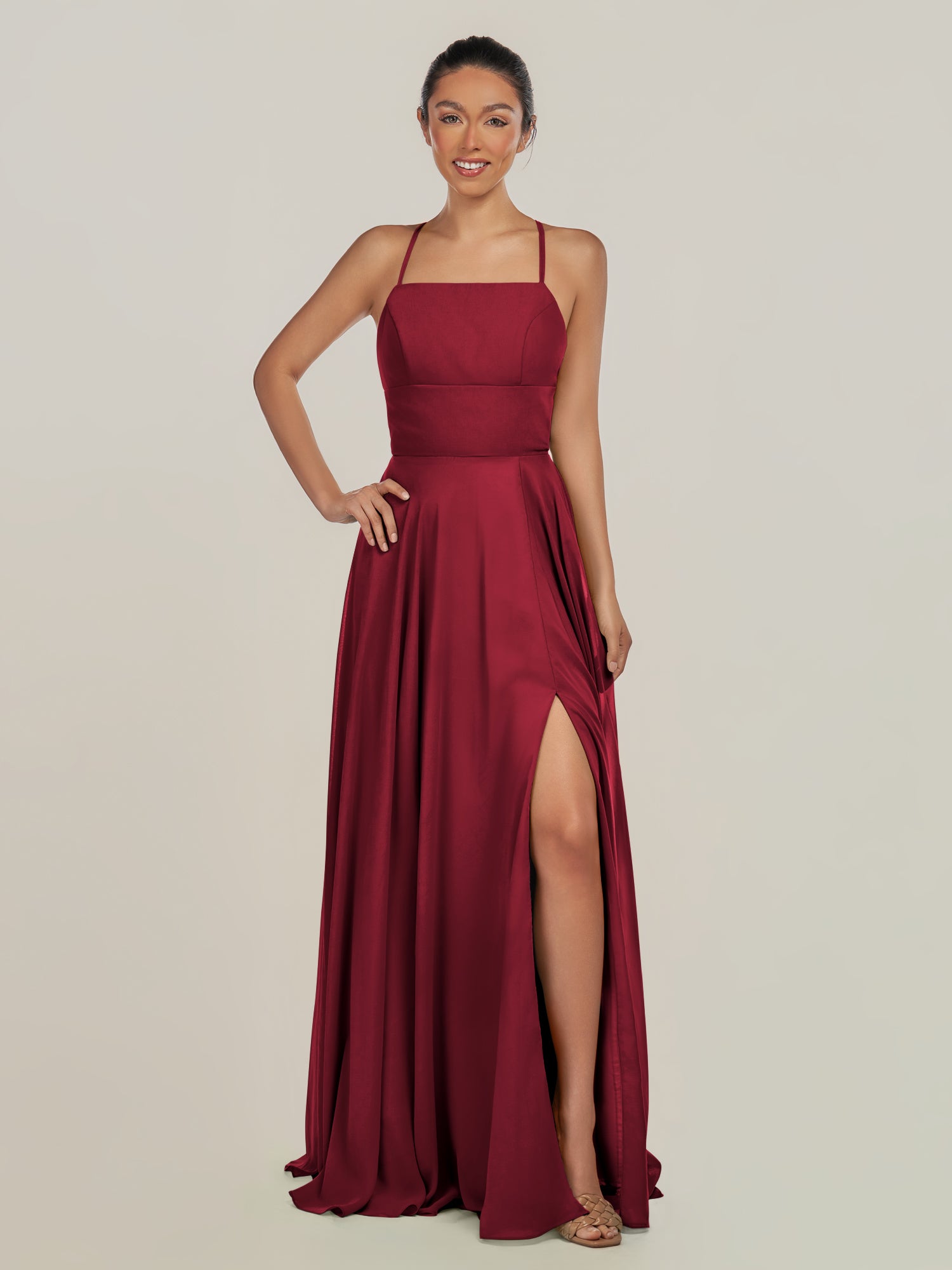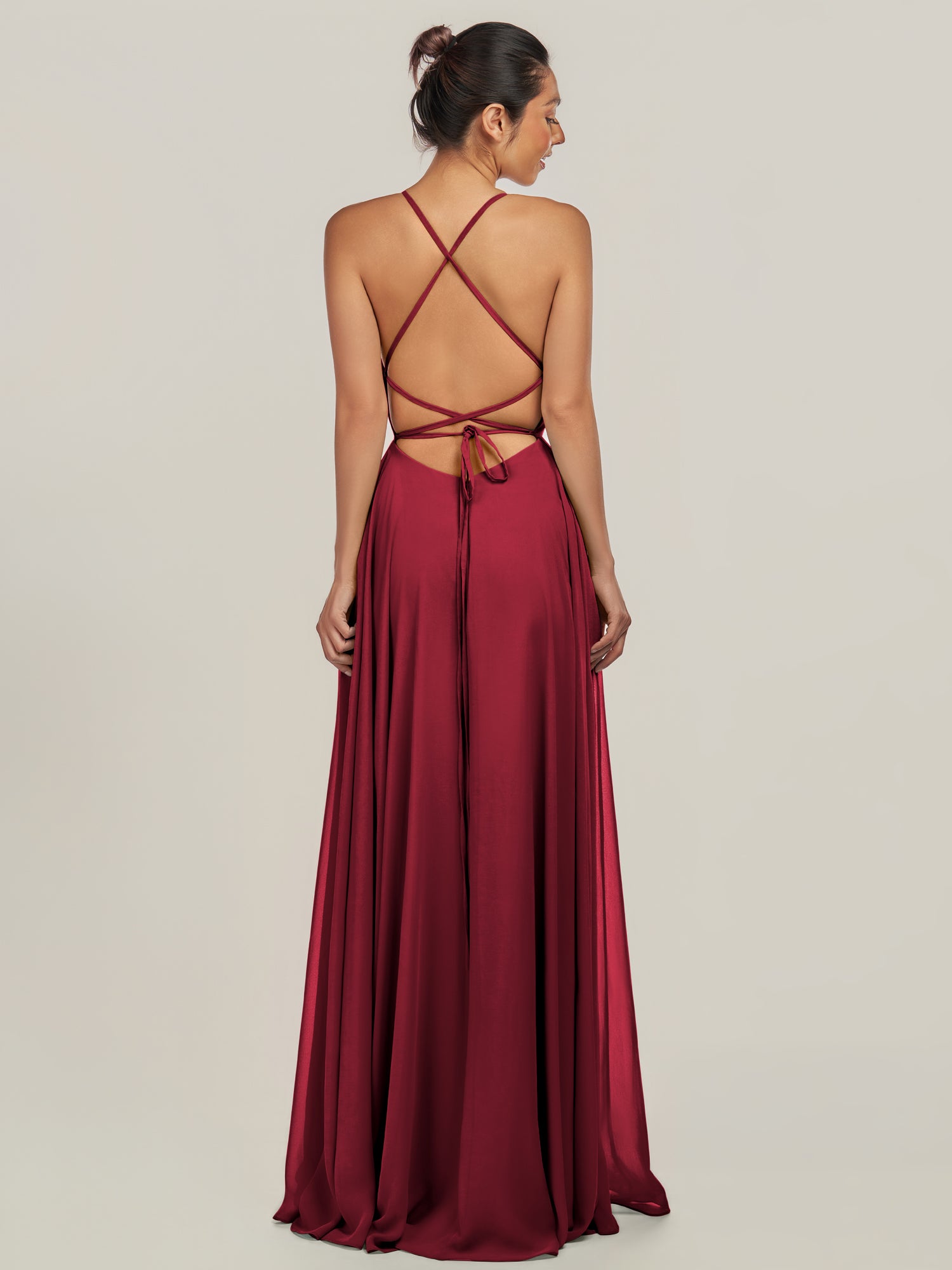 Dena | Berry - A Line Chiffon Spaghetti Straps Long Bridesmaid Dress with Slit
