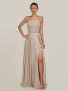 Dena | Frost - A Line Chiffon Spaghetti Straps Long Bridesmaid Dress with Slit