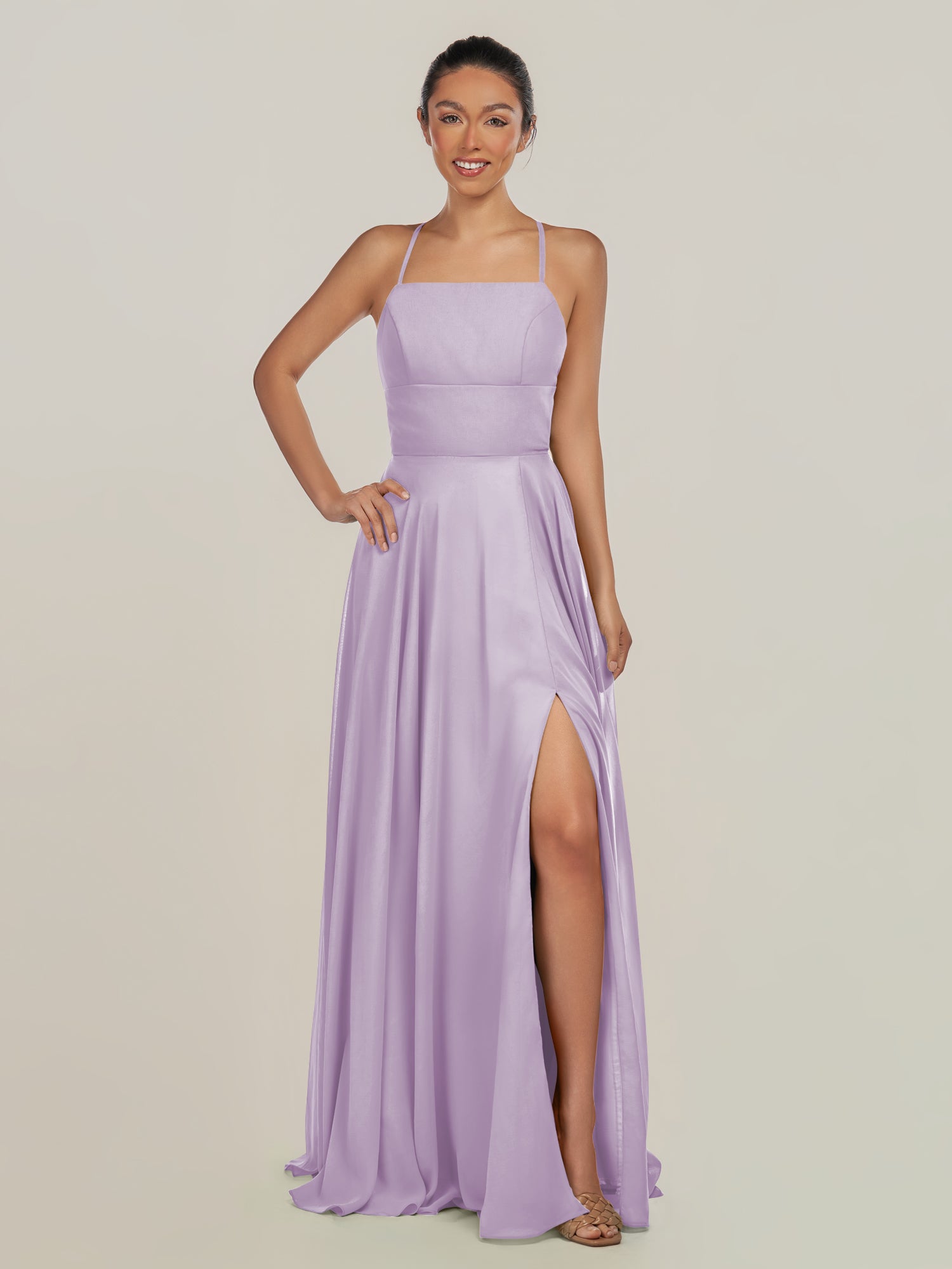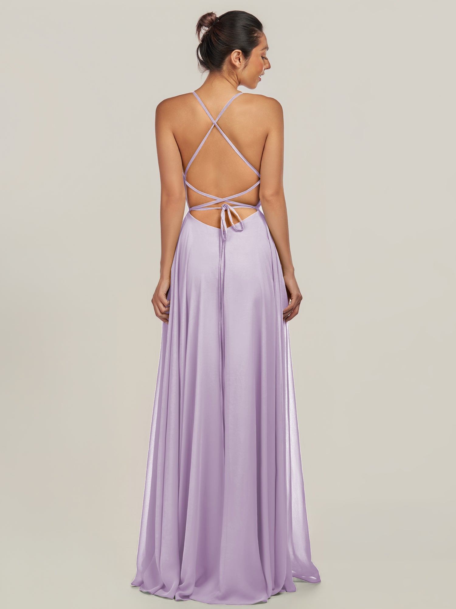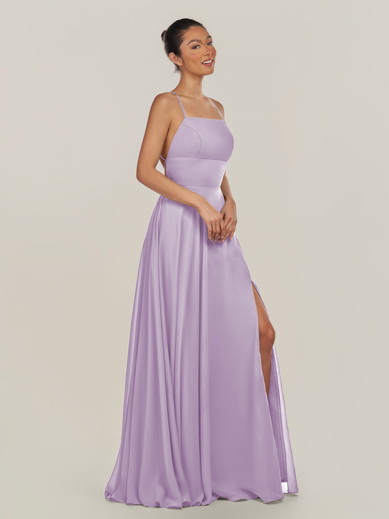 Dena | Lavender - A Line Chiffon Spaghetti Straps Long Bridesmaid Dress with Slit