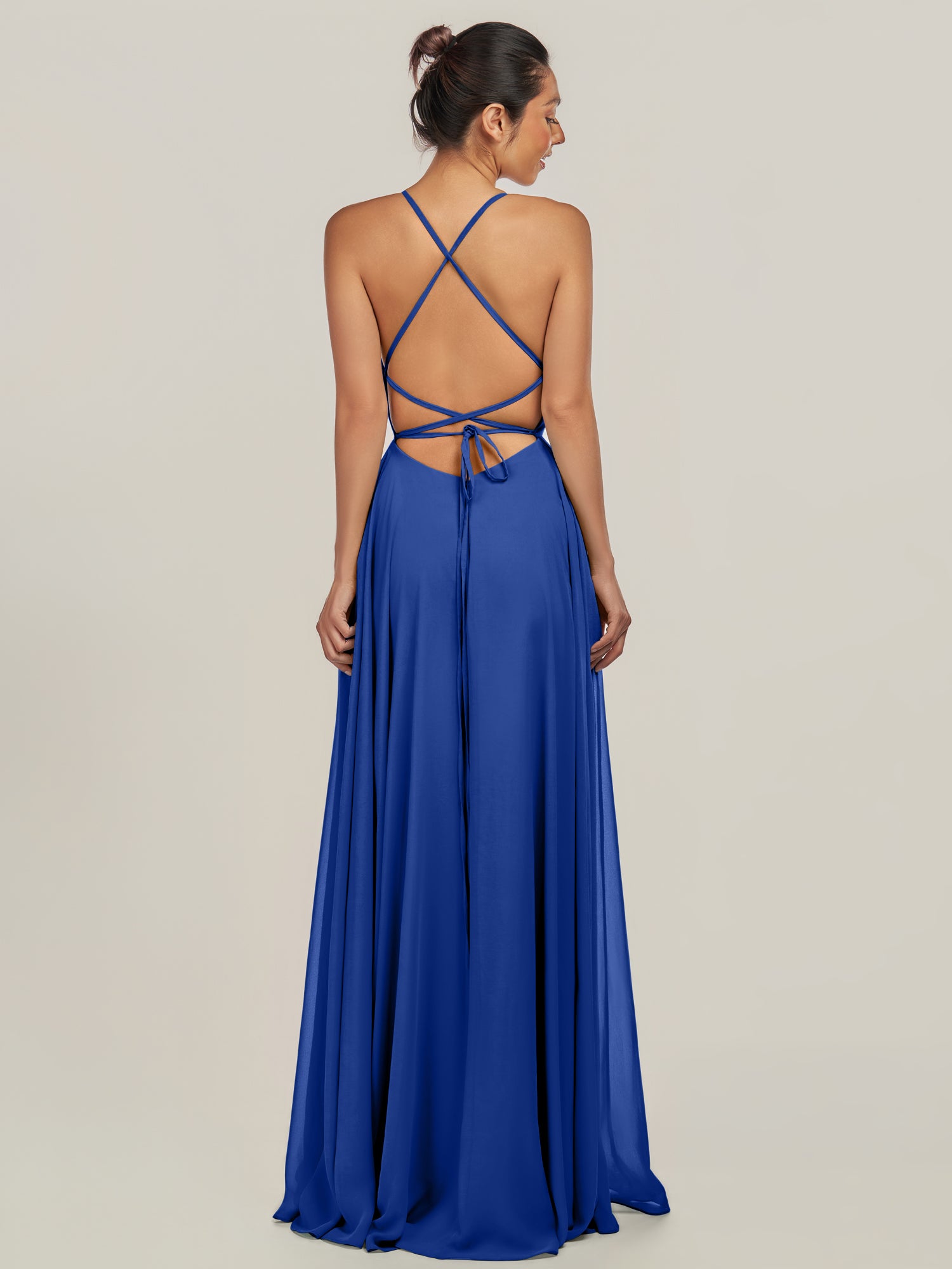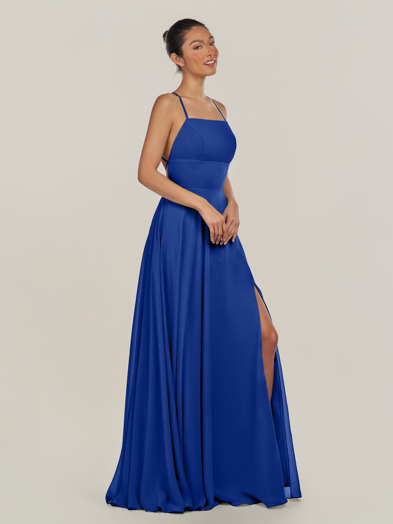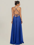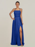 Dena | Royal Blue - A Line Chiffon Spaghetti Straps Long Bridesmaid Dress with Slit