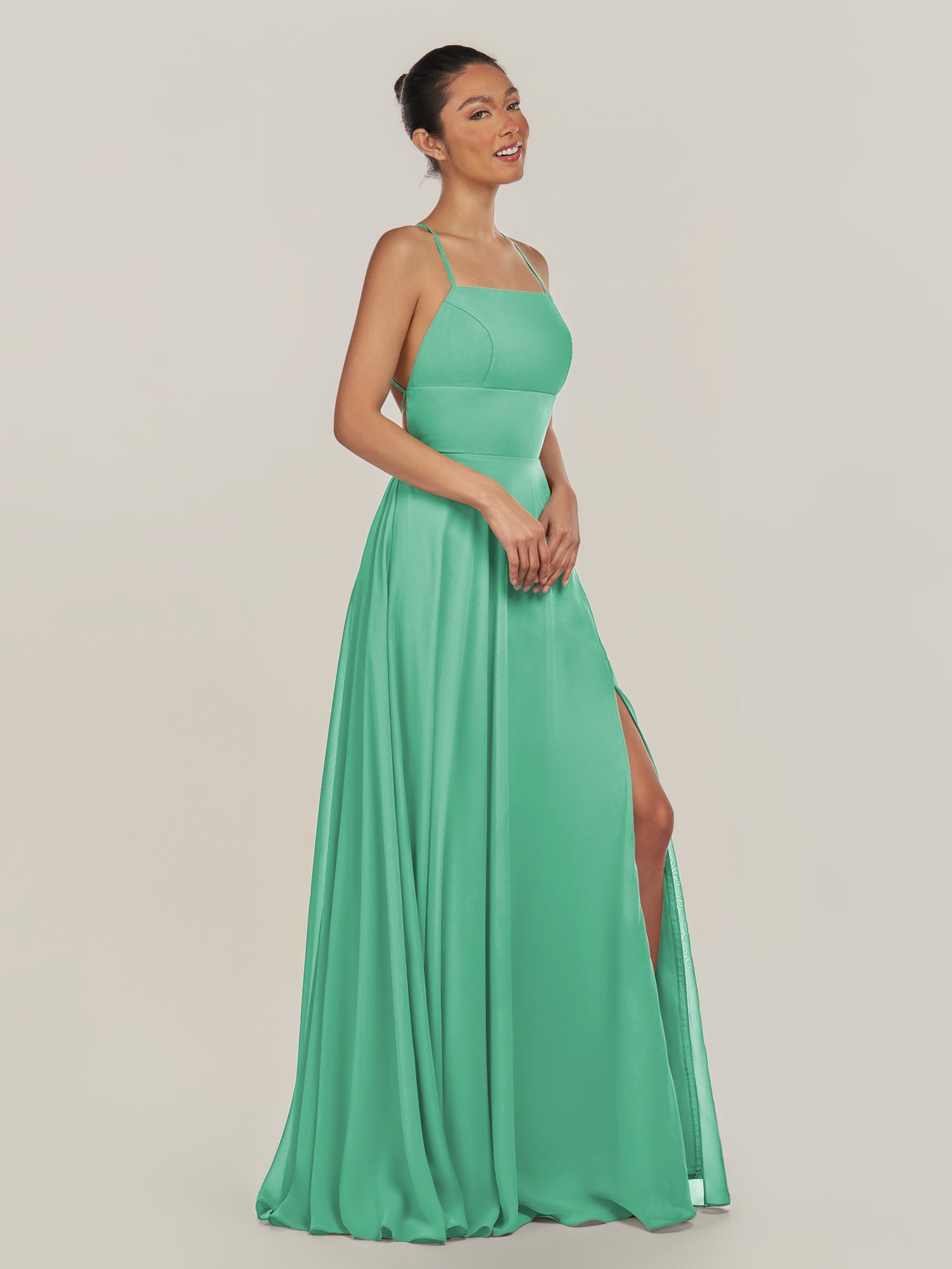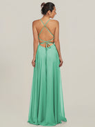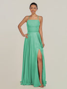 Dena | Turquoise - A Line Chiffon Spaghetti Straps Long Bridesmaid Dress with Slit