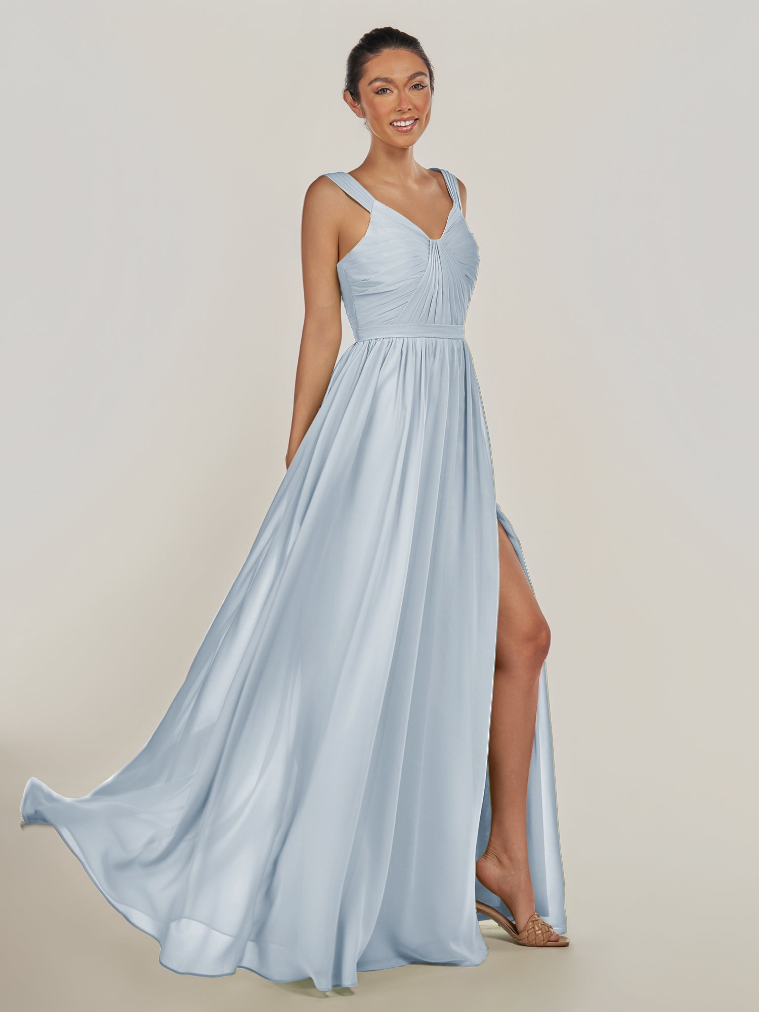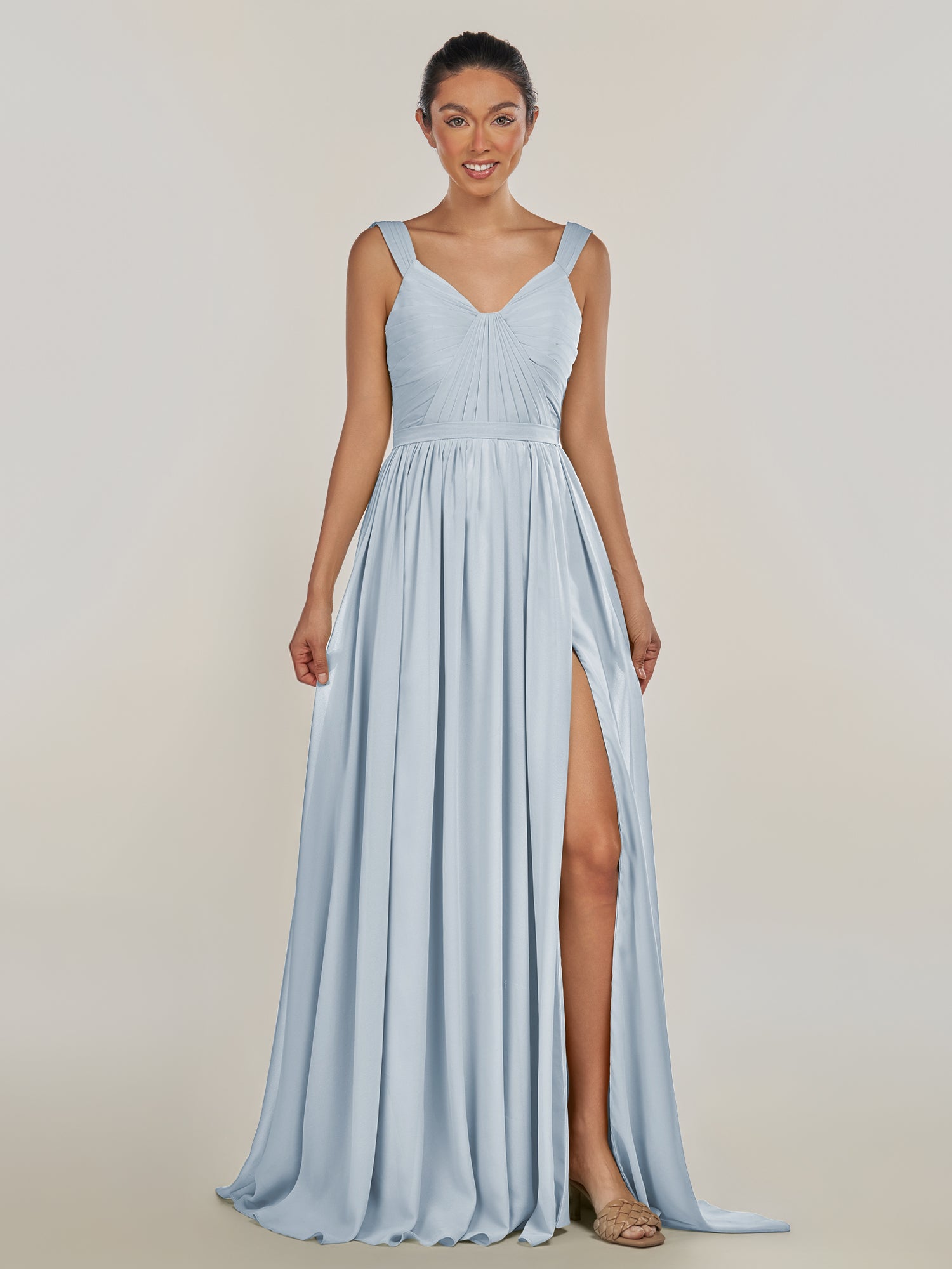 Fira | Ice - A Line Chiffon V Neck Pleated Long Bridesmaid Dress with Slit