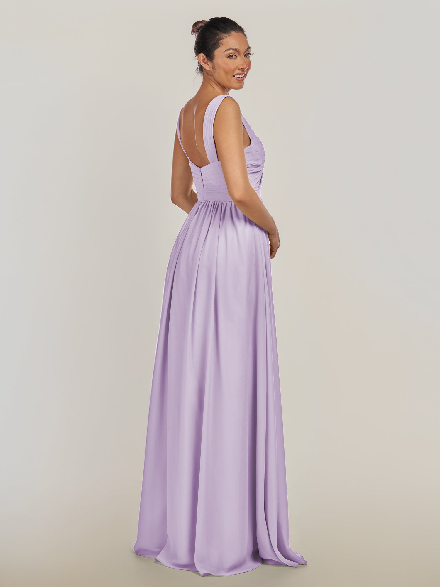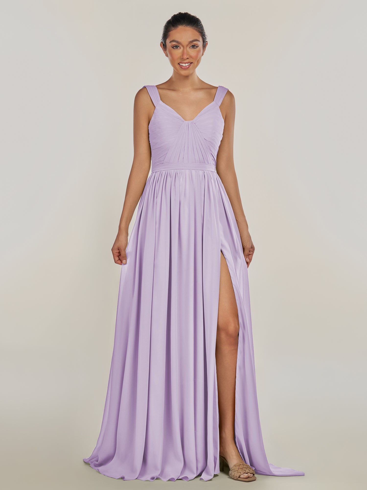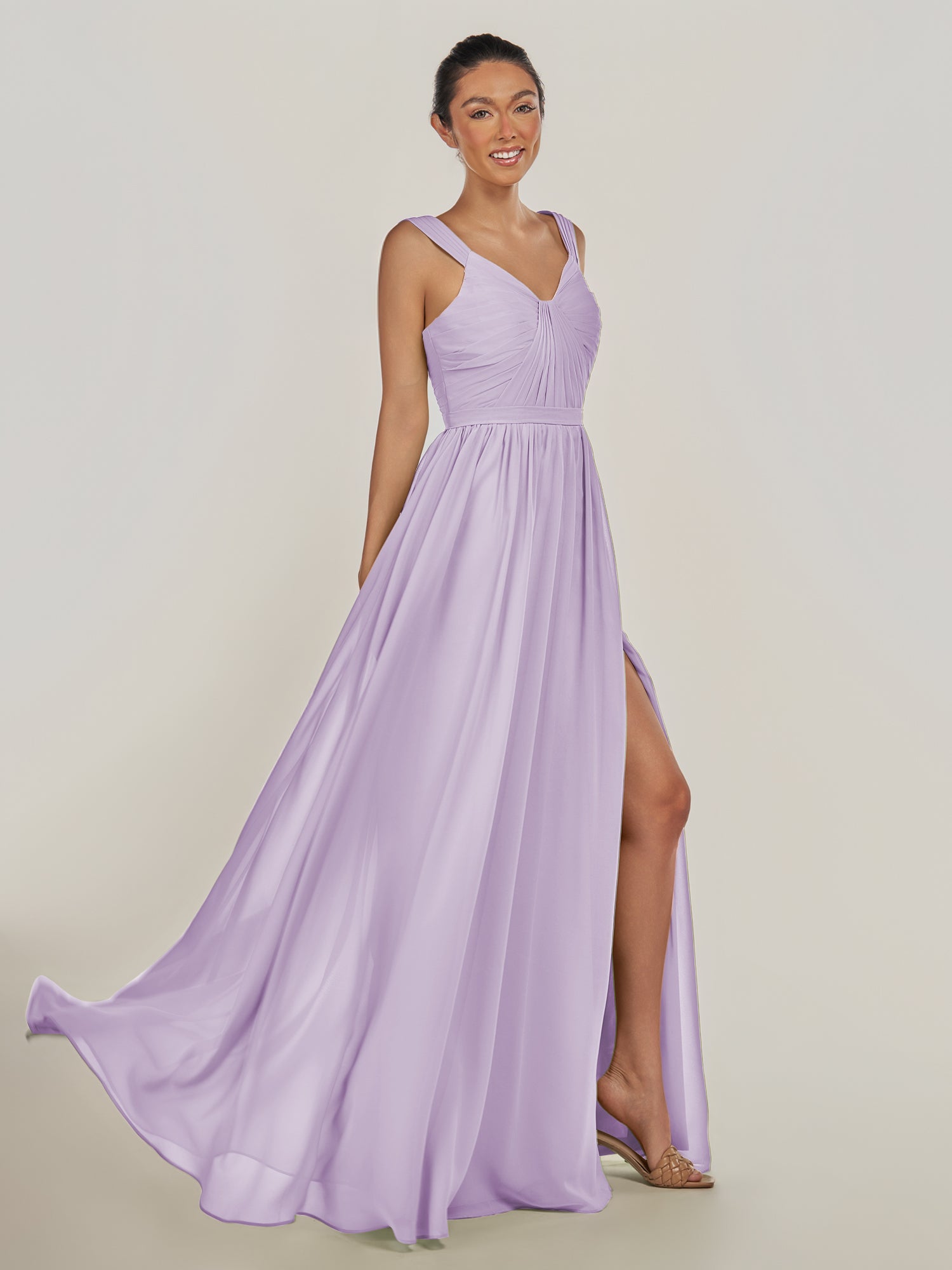 Fira | Lavender - A Line Chiffon V Neck Pleated Long Bridesmaid Dress with Slit