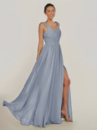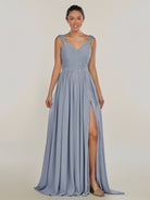 Fira | Twilight - A Line Chiffon V Neck Pleated Long Bridesmaid Dress with Slit