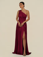 Gaela | Berry - A Line One Shoulder Chiffon Pleated Long Bridesmaid Dress with Slit