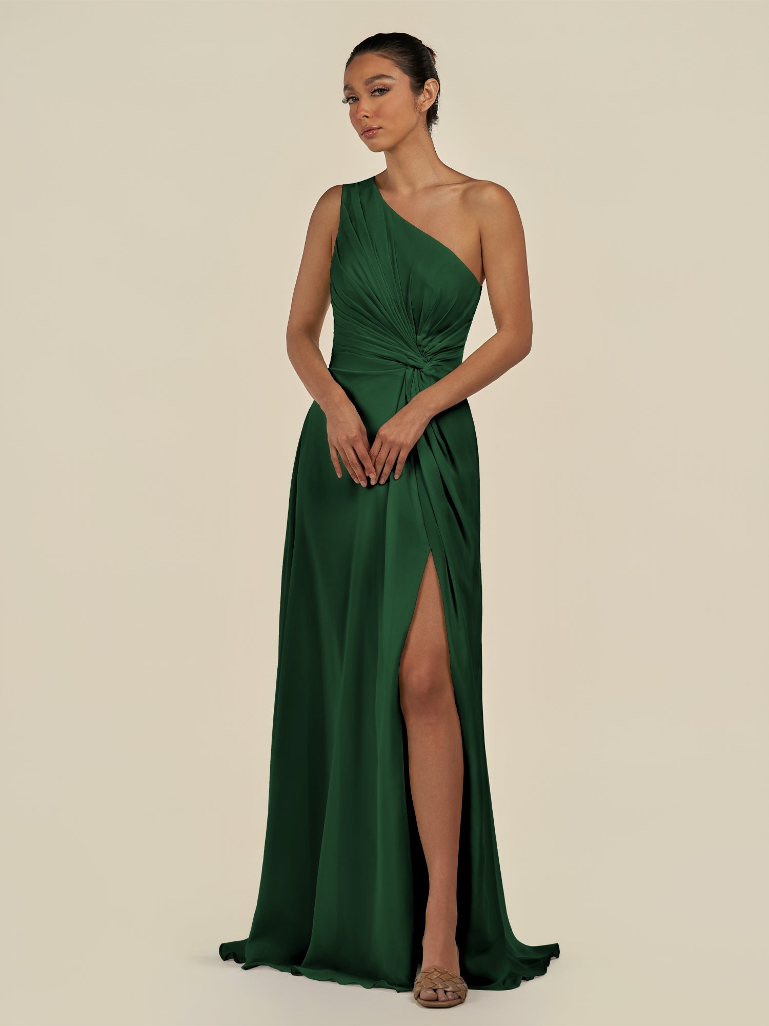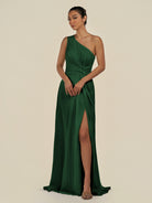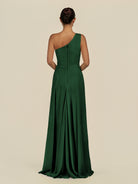 Gaela | Dark Green - A Line One Shoulder Chiffon Pleated Long Bridesmaid Dress with Slit