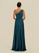 Gaela | Dark Teal - A Line One Shoulder Chiffon Pleated Long Bridesmaid Dress with Slit