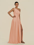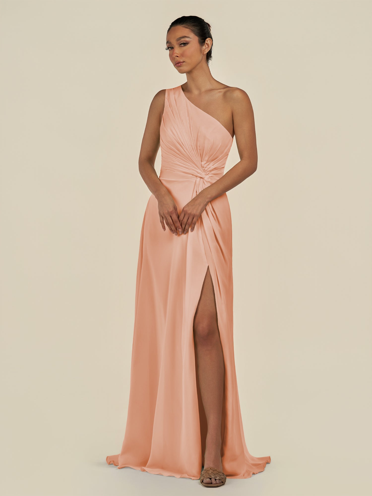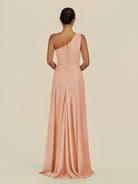 Gaela | English Rose - A Line One Shoulder Chiffon Pleated Long Bridesmaid Dress with Slit