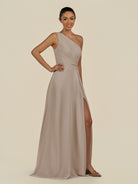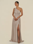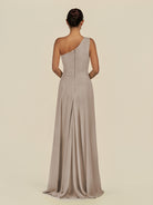 Gaela | Frost - A Line One Shoulder Chiffon Pleated Long Bridesmaid Dress with Slit