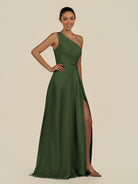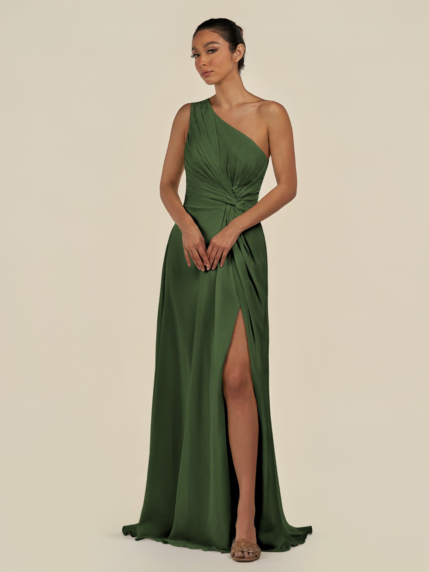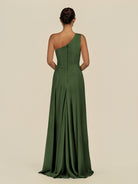 Gaela | Moss - A Line One Shoulder Chiffon Pleated Long Bridesmaid Dress with Slit