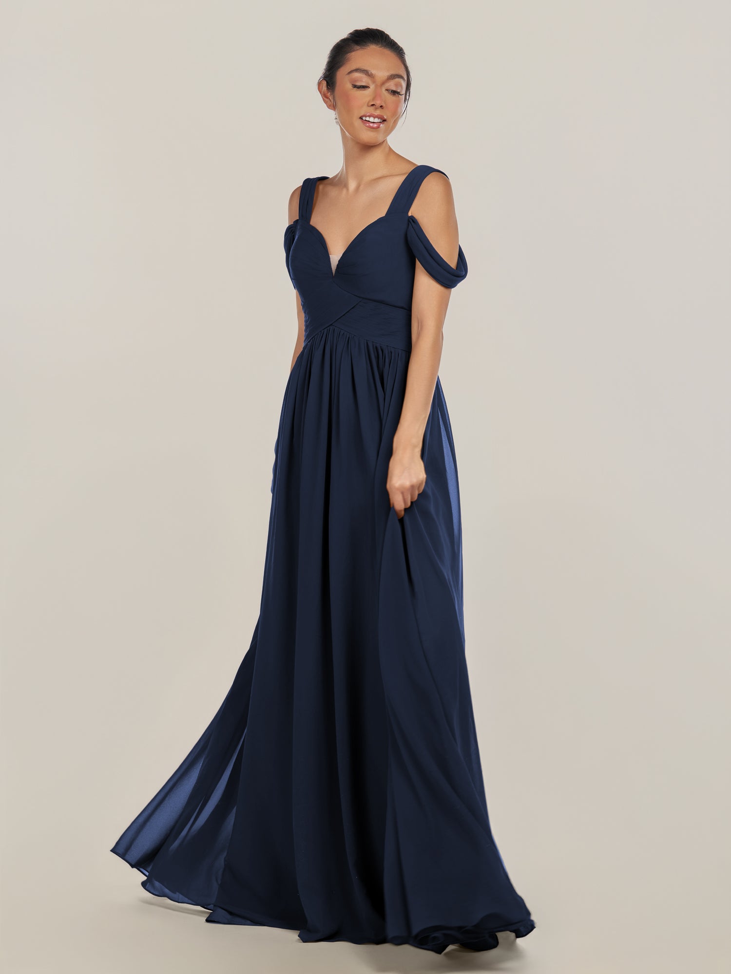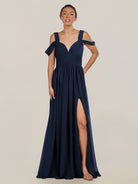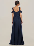 Helin | Dark Navy - A Line Chiffon Off the Shoulder Long Bridesmaid Dress with Slit