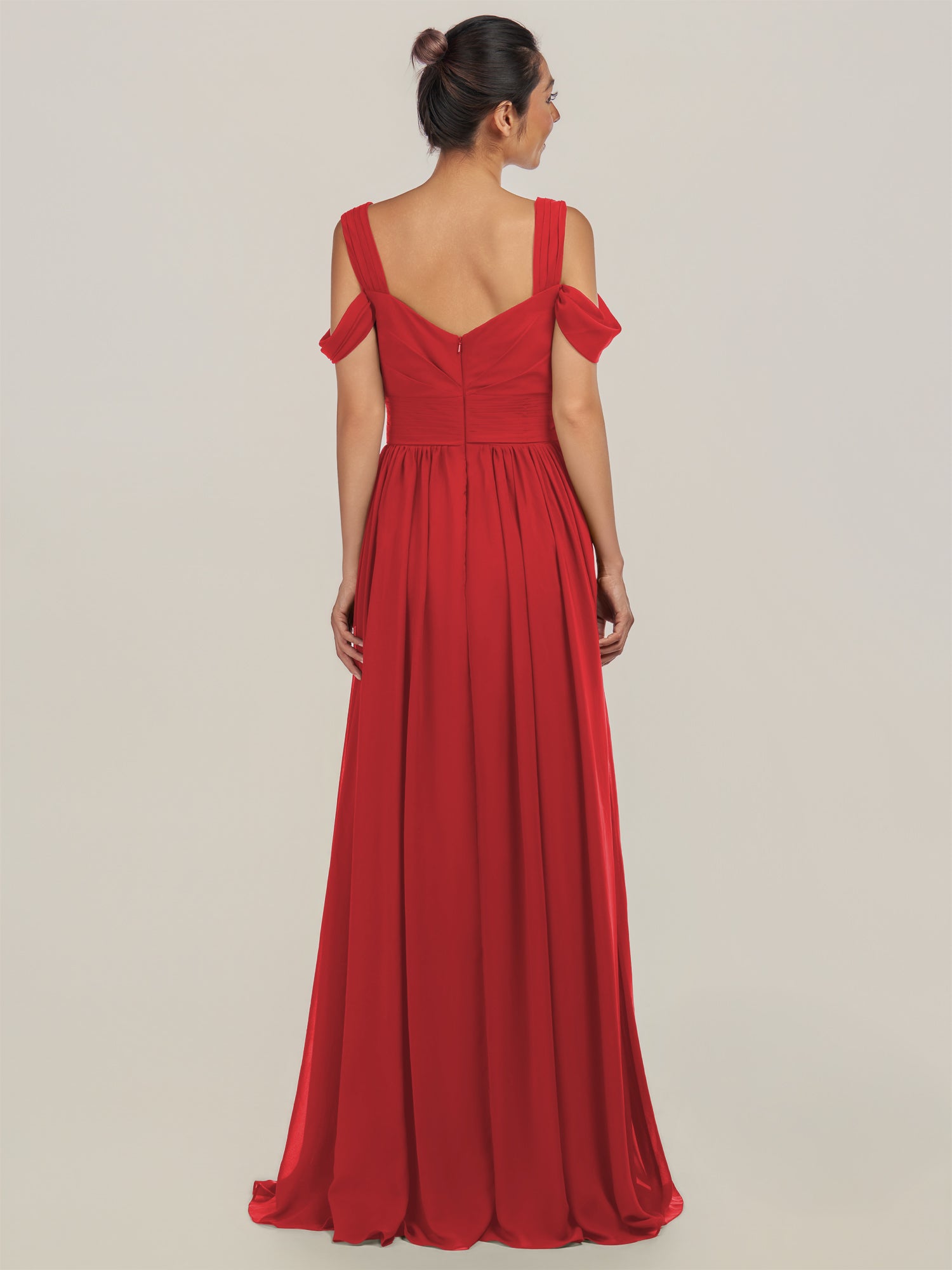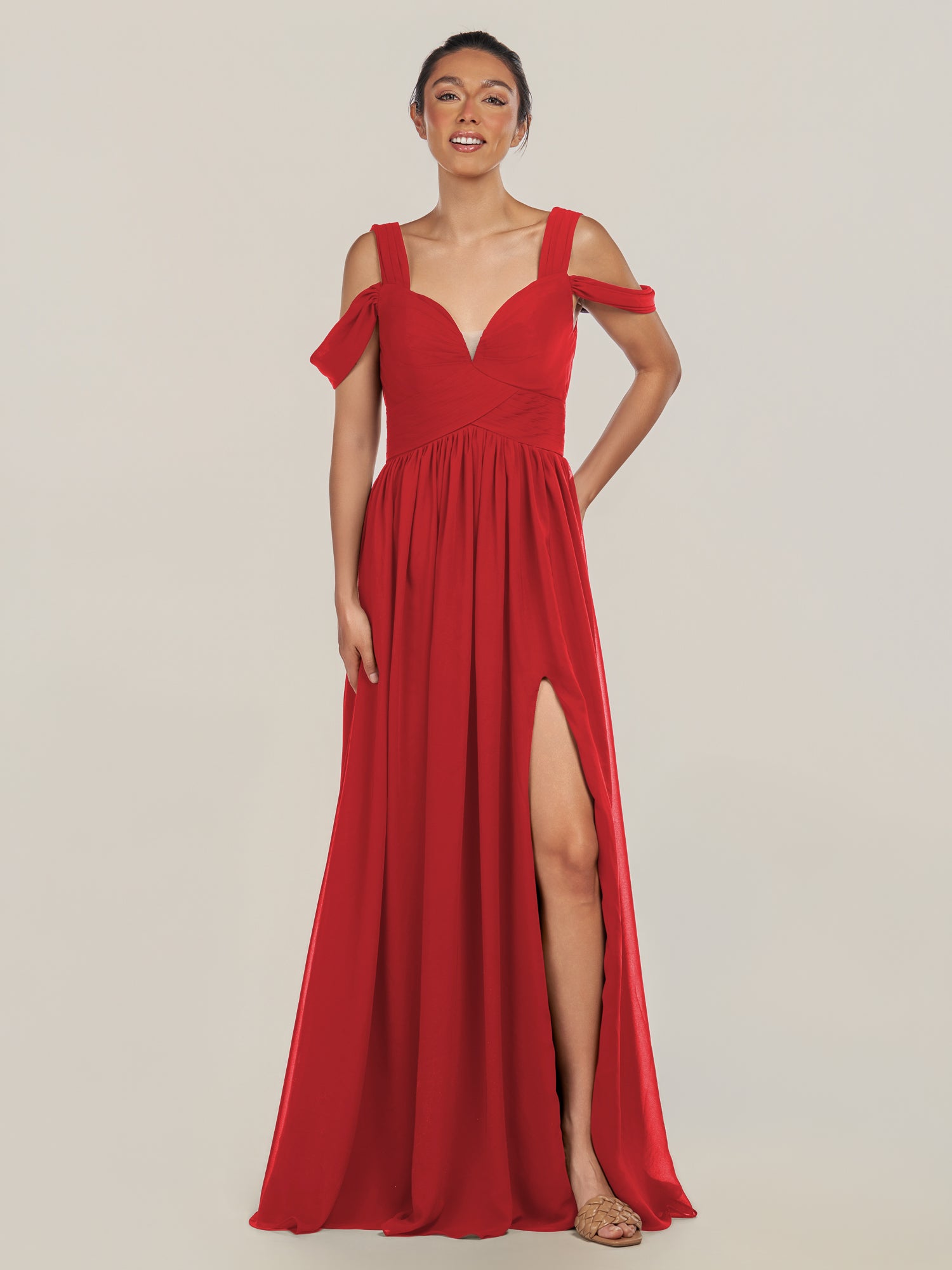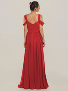 Helin | Ruby Red - A Line Chiffon Off the Shoulder Long Bridesmaid Dress with Slit