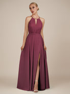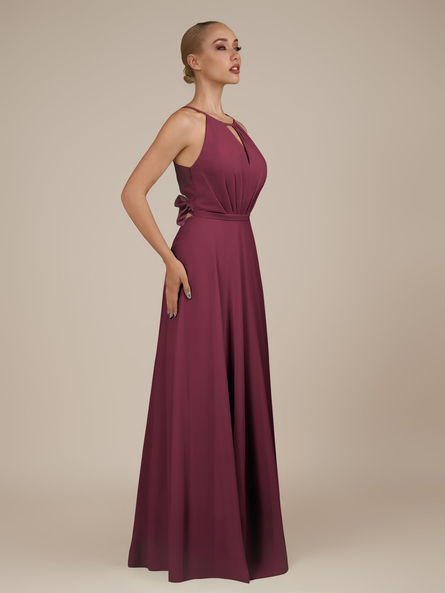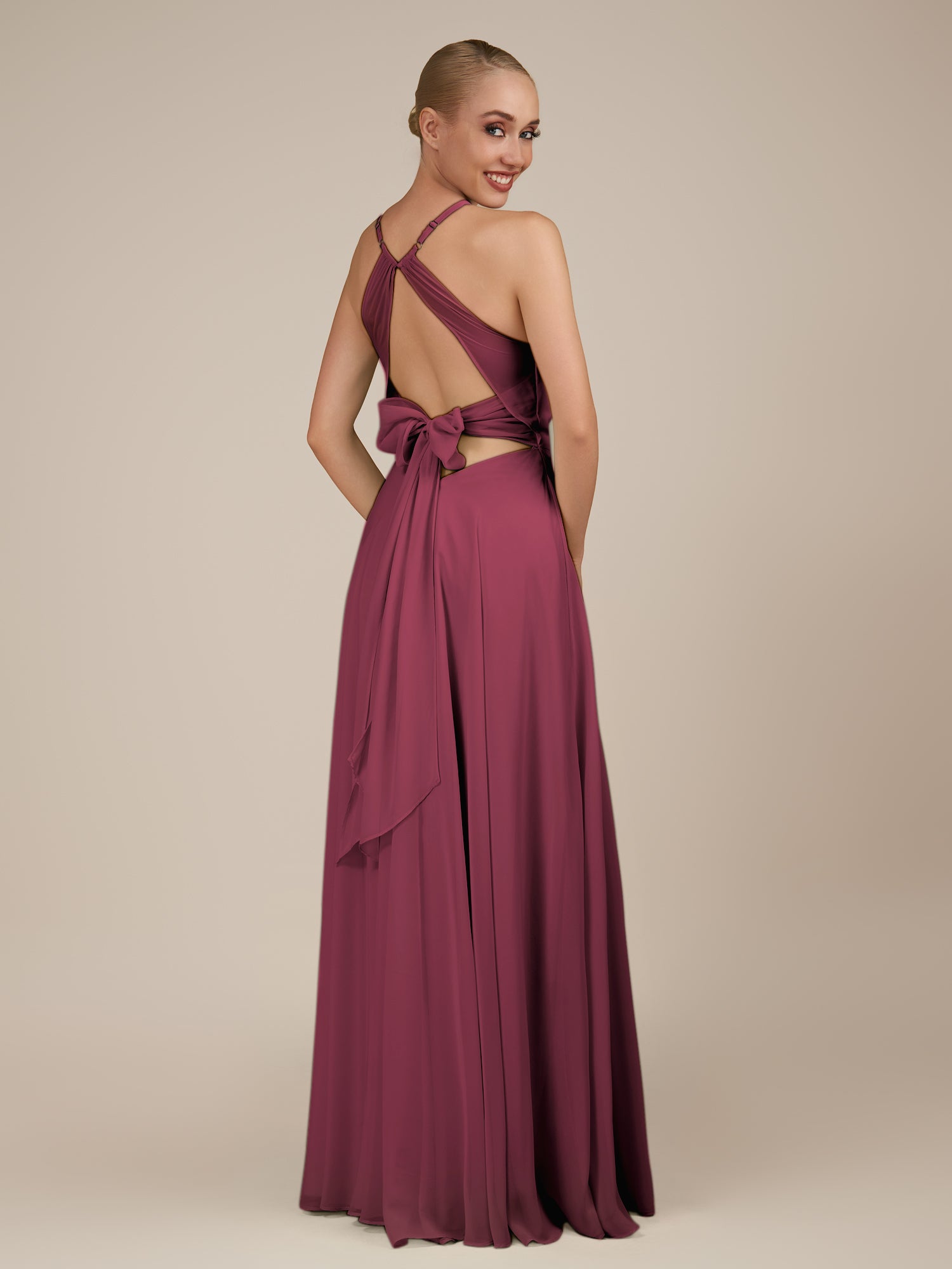 Illyria | Desert Rose - A Line Chiffon Halter Neck Long Bridesmaid Dress with Cut Out