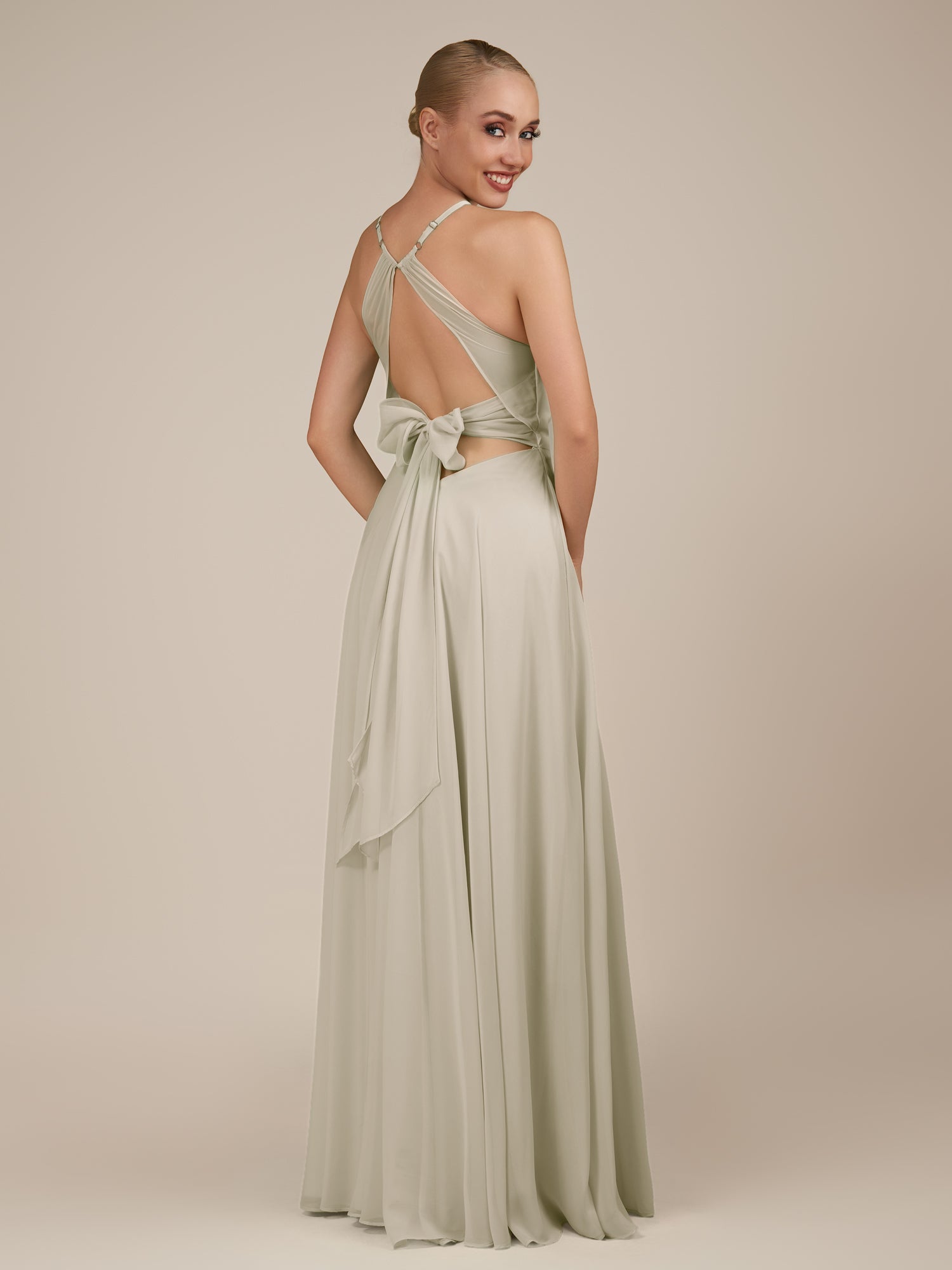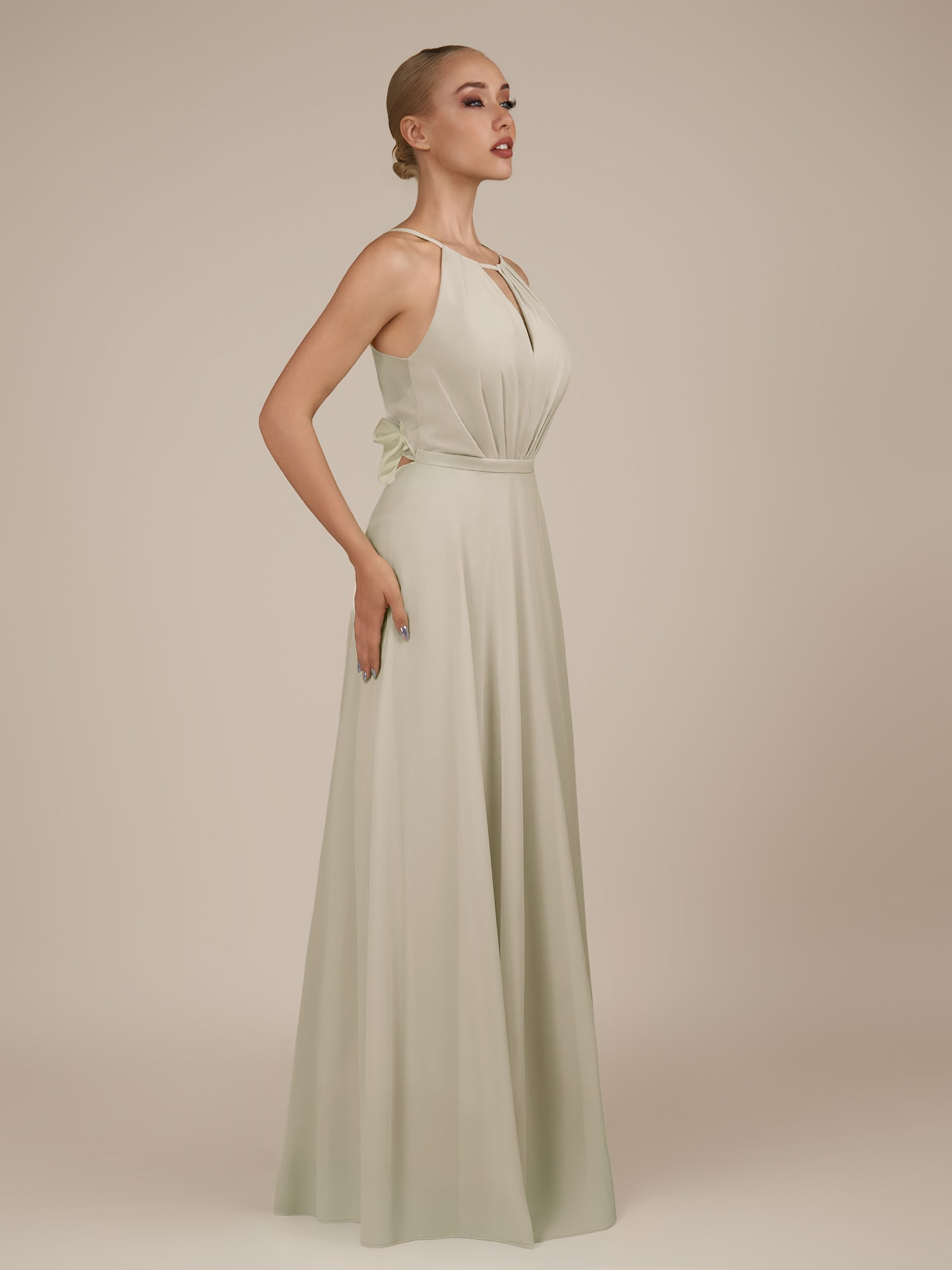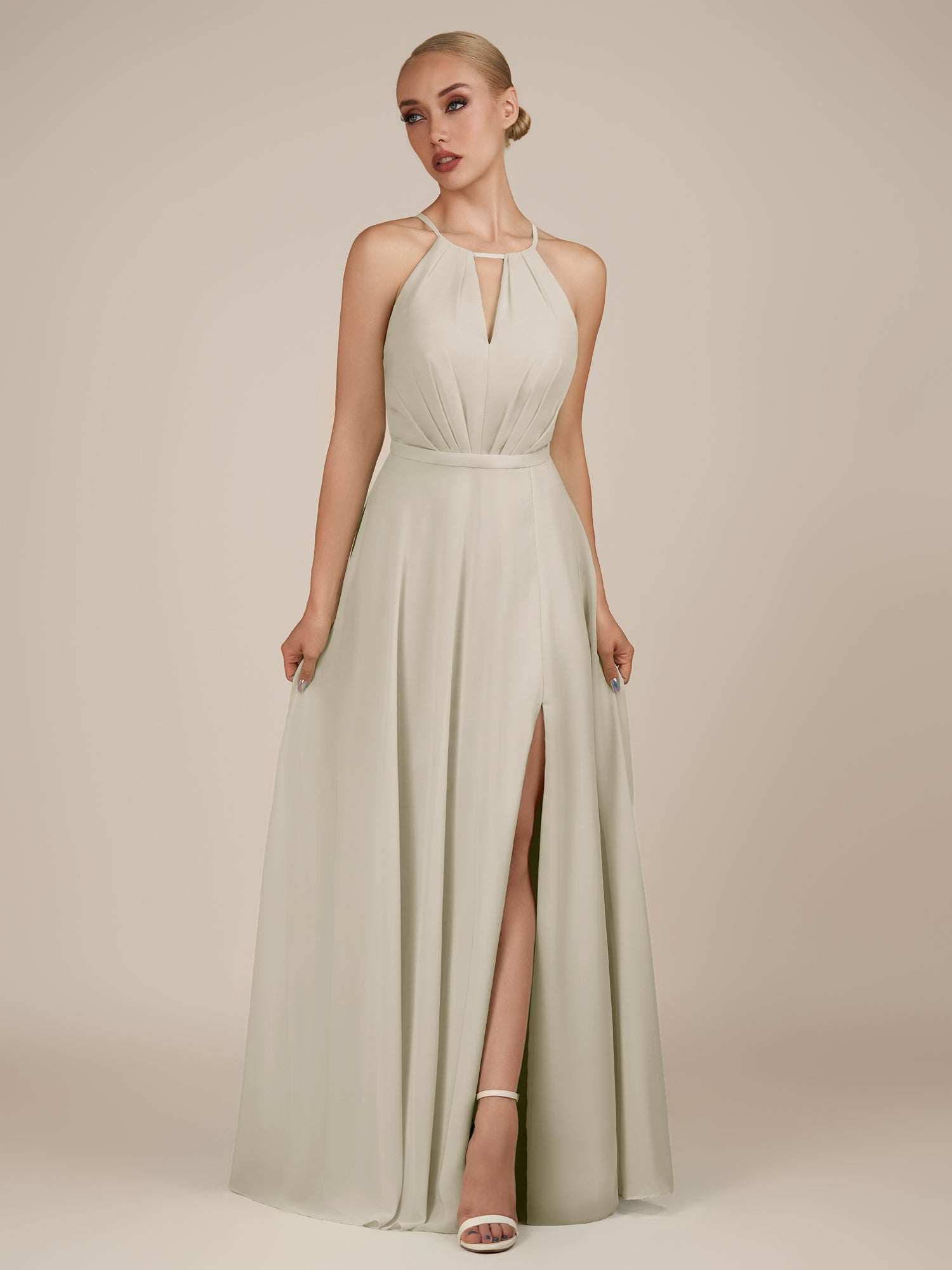 Illyria | Dove Gray - A Line Chiffon Halter Neck Long Bridesmaid Dress with Cut Out