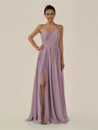 Irissa | Dusk - A Line Chiffon V Neck Pleated Long Bridesmaid Dress with Slit
