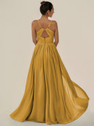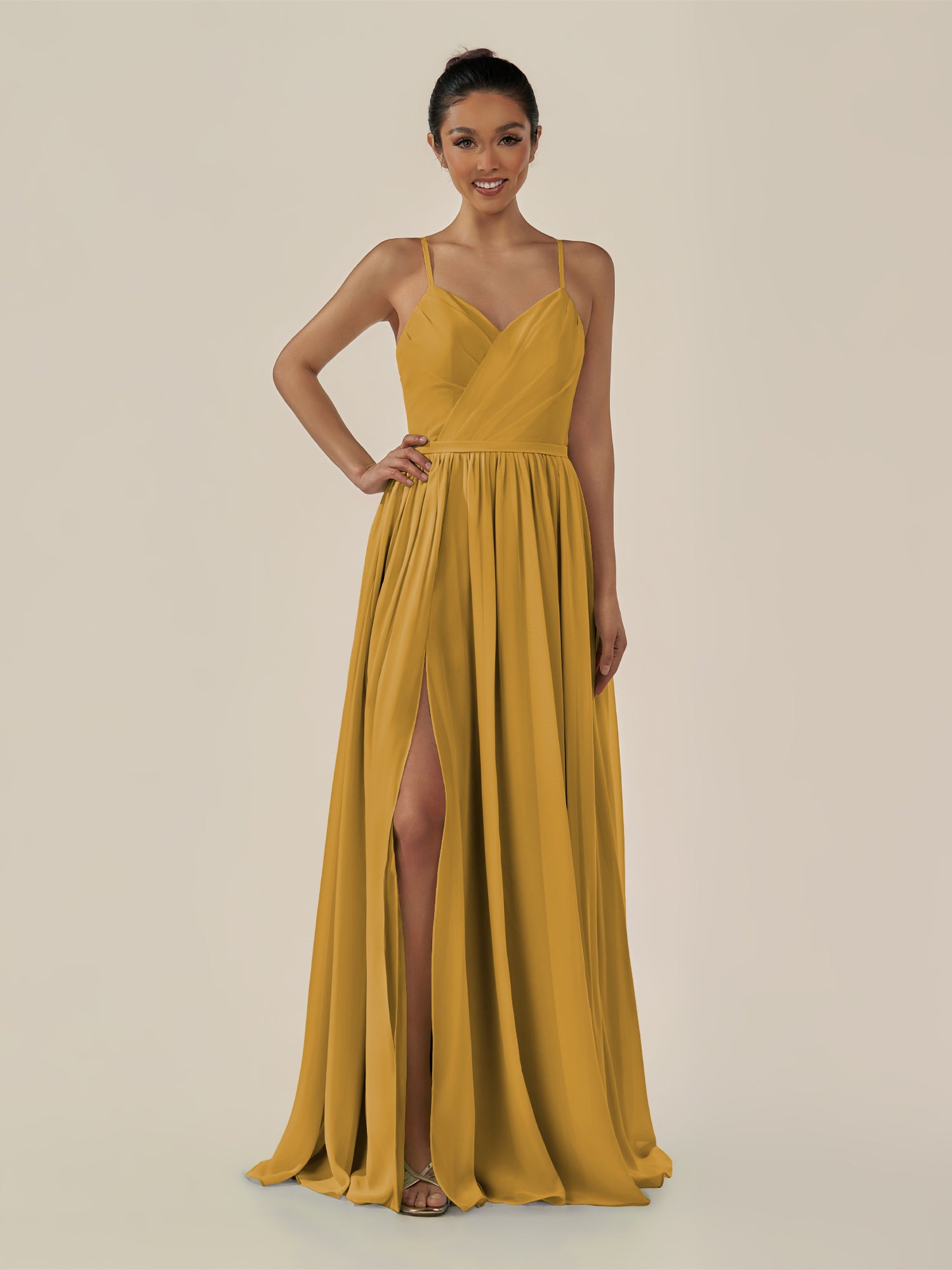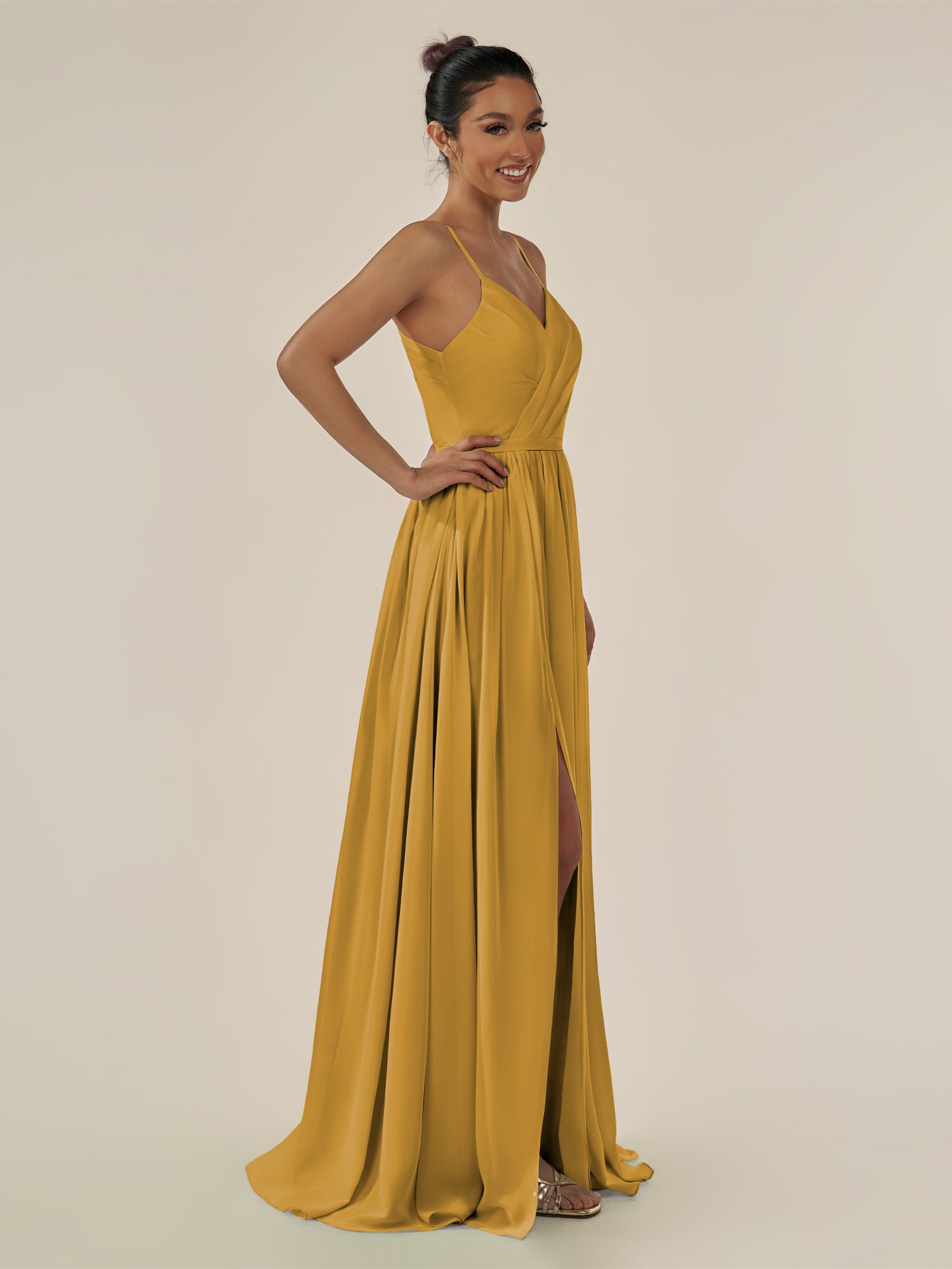 Irissa | Marigold - A Line Chiffon V Neck Pleated Long Bridesmaid Dress with Slit