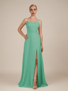 Jovienne | Turquoise - Sheath Scoop Neck Chiffon Long Bridesmaid Dress with Slit
