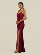 Kaelin | Berry - Sheath Chiffon V Neck Long Bridesmaid Dress with Slit