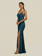 Kaelin | Dark Teal - Sheath Chiffon V Neck Long Bridesmaid Dress with Slit