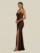 Kaelin | Espresso - Sheath Chiffon V Neck Long Bridesmaid Dress with Slit