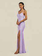 Kaelin | Lavender - Sheath Chiffon V Neck Long Bridesmaid Dress with Slit