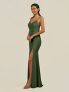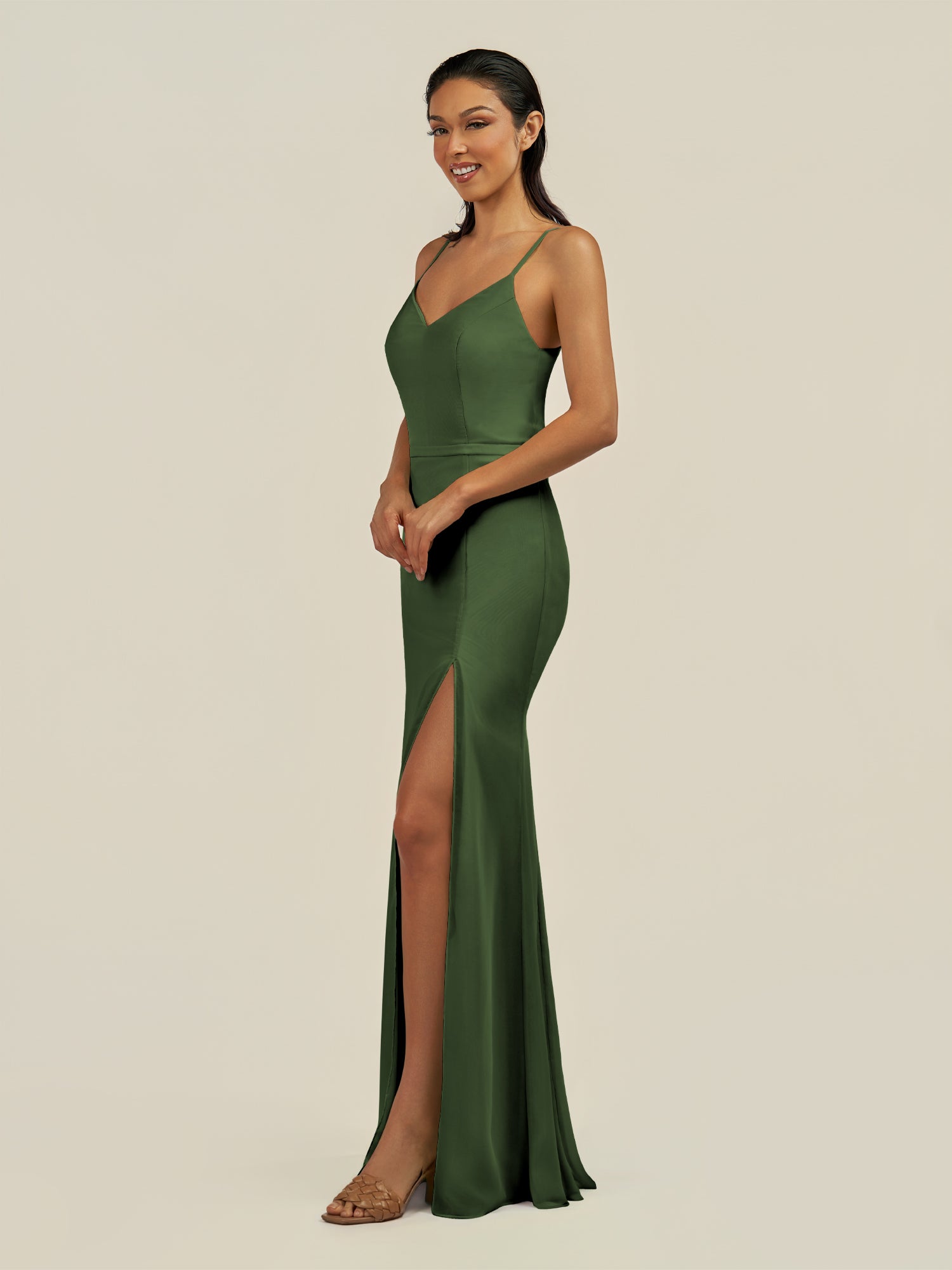 Kaelin | Moss - Sheath Chiffon V Neck Long Bridesmaid Dress with Slit