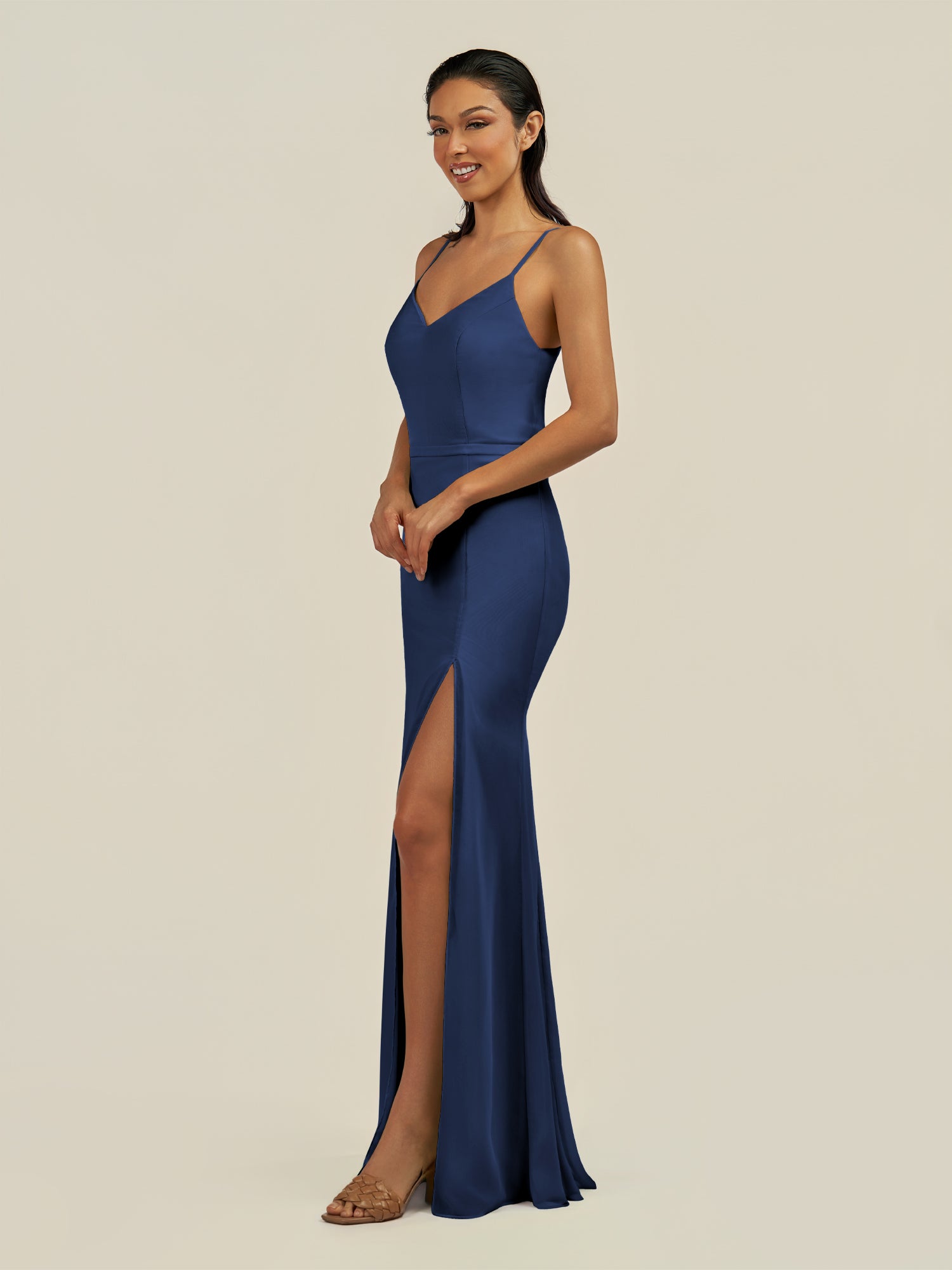 Kaelin | Navy - Sheath Chiffon V Neck Long Bridesmaid Dress with Slit