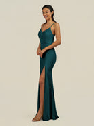 Kaelin | Pine - Sheath Chiffon V Neck Long Bridesmaid Dress with Slit
