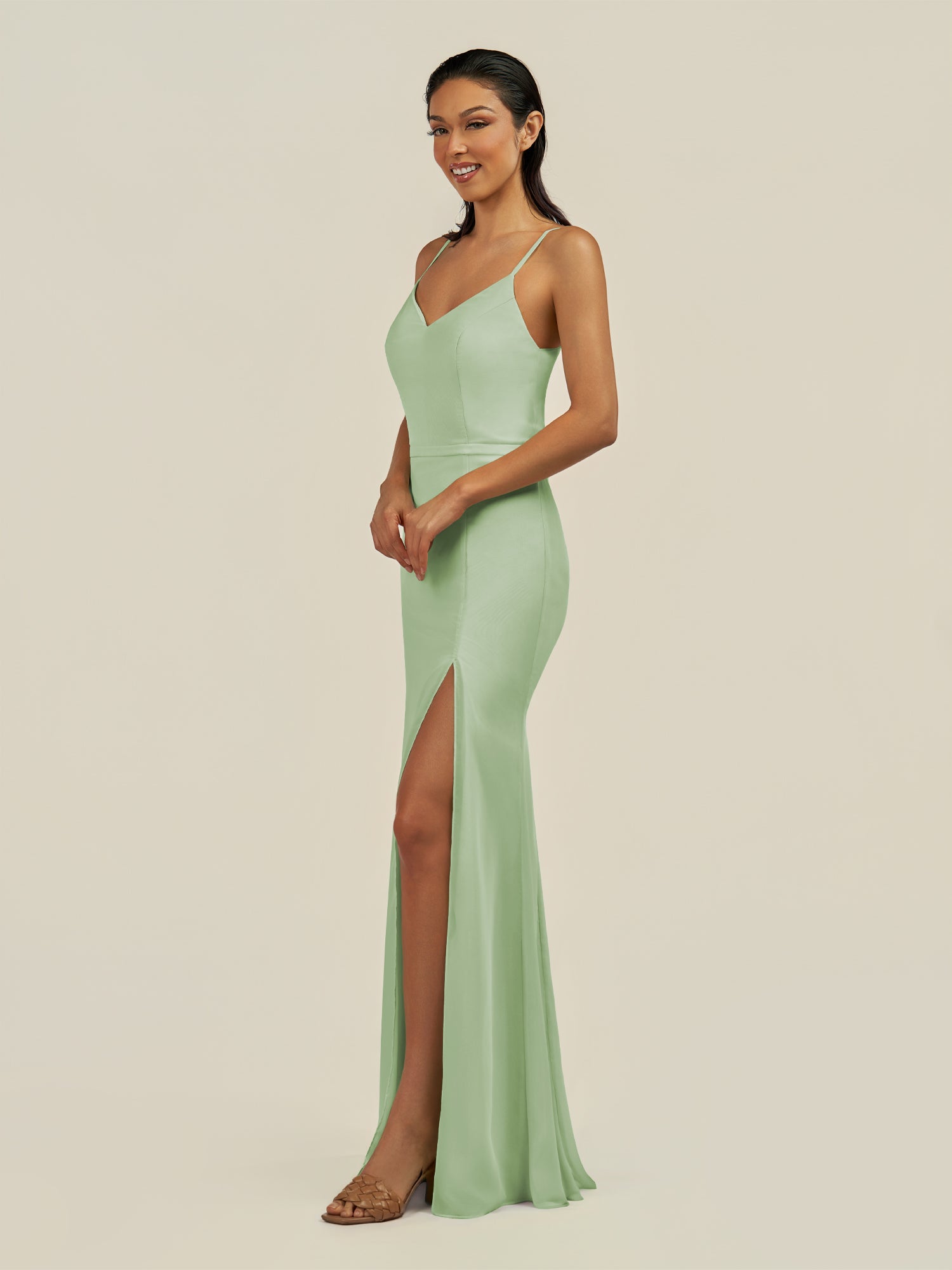 Kaelin | Sage - Sheath Chiffon V Neck Long Bridesmaid Dress with Slit