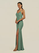 Kaelin | Sea Glass - Sheath Chiffon V Neck Long Bridesmaid Dress with Slit