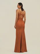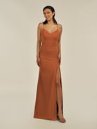 Kaelin | Terracotta - Sheath Chiffon V Neck Long Bridesmaid Dress with Slit