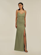 Kaelin | Thyme - Sheath Chiffon V Neck Long Bridesmaid Dress with Slit