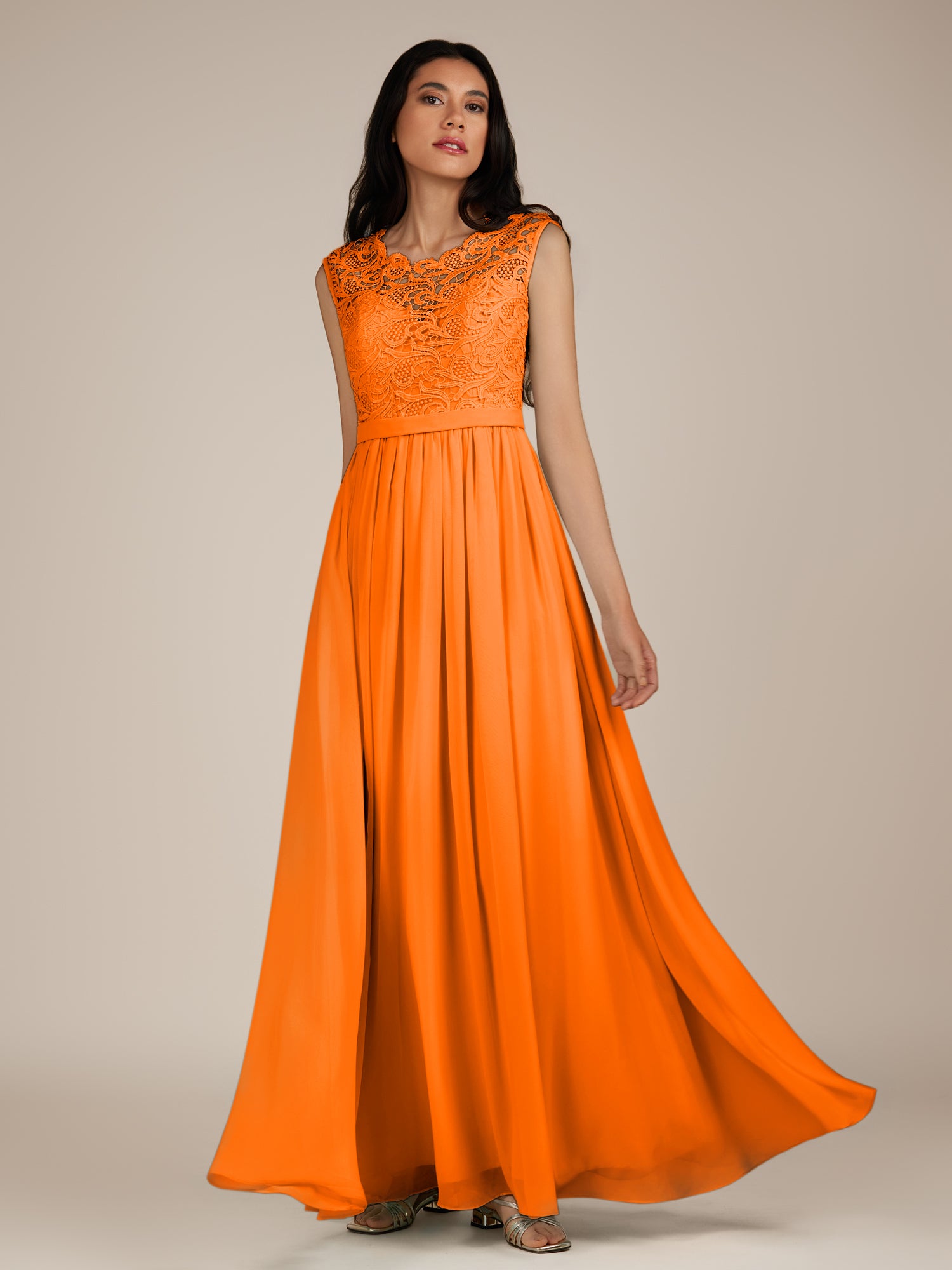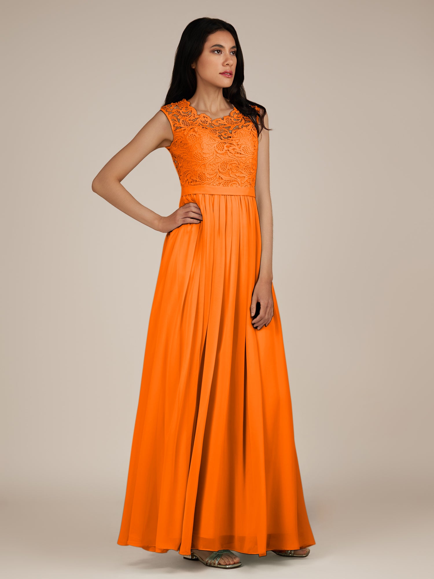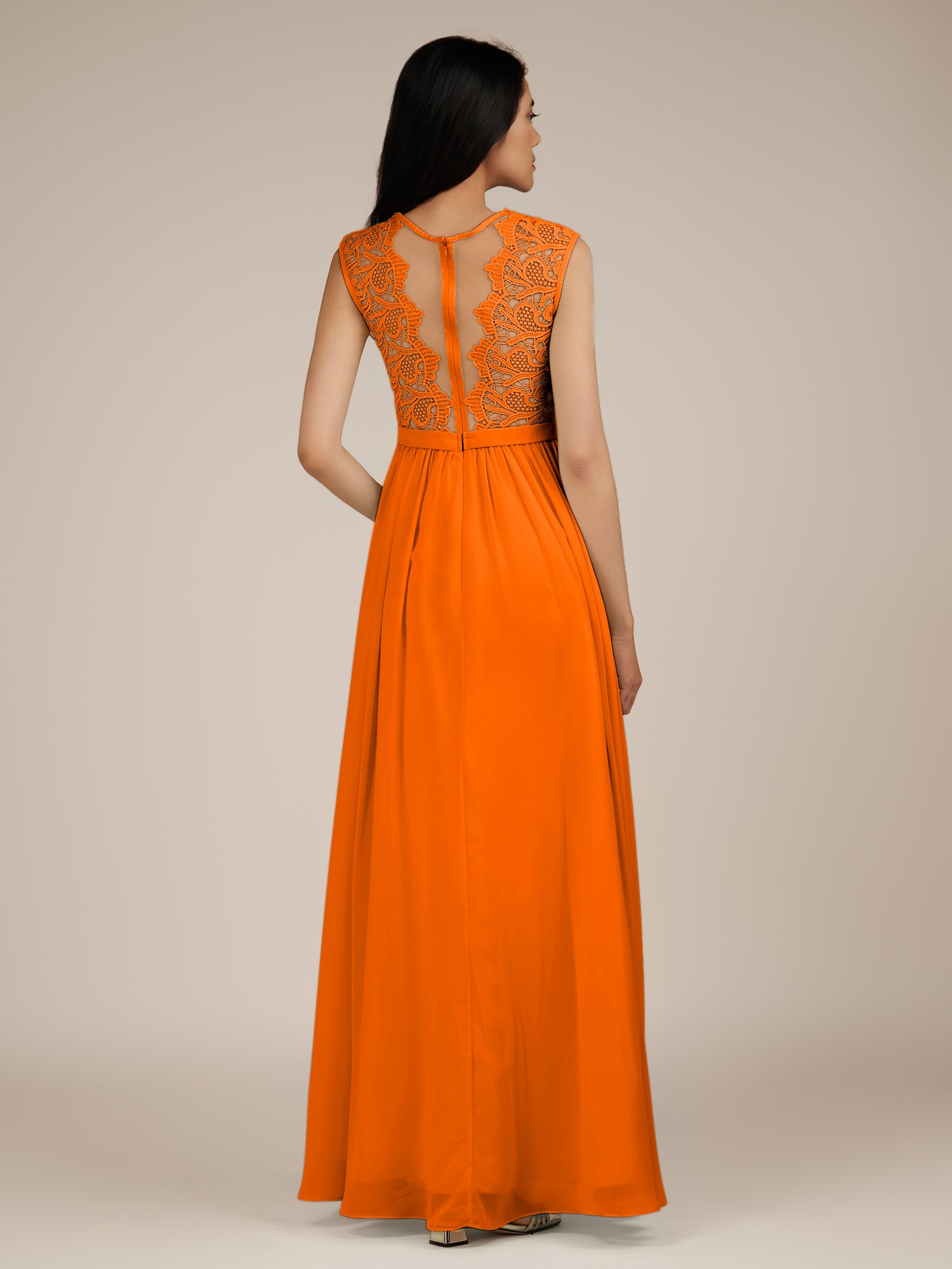 Niamh | Cinnamon - A Line Illusion Neck Chiffon Long Bridesmaid Dress