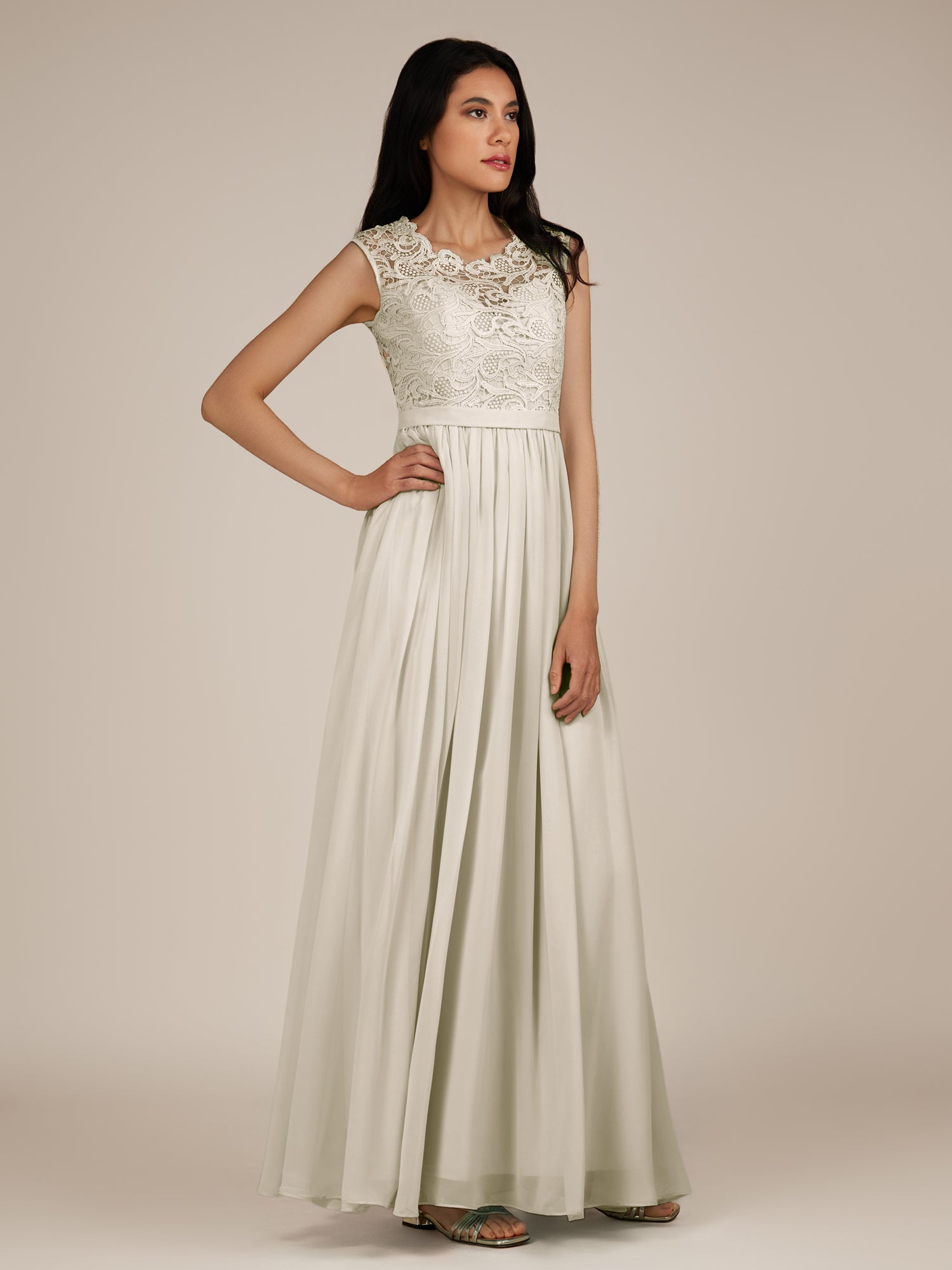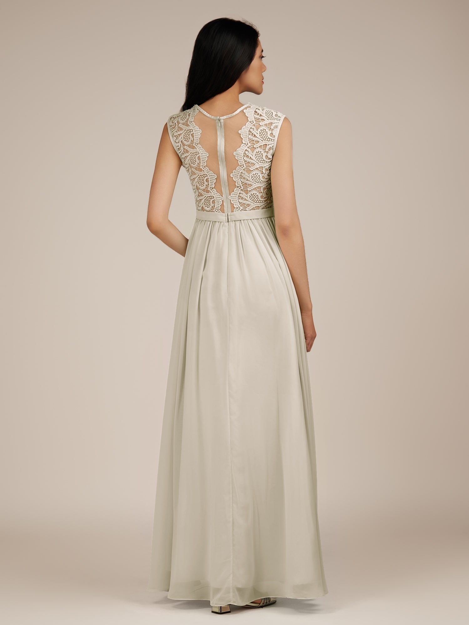 Niamh | Dove Gray - A Line Illusion Neck Chiffon Long Bridesmaid Dress