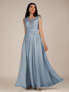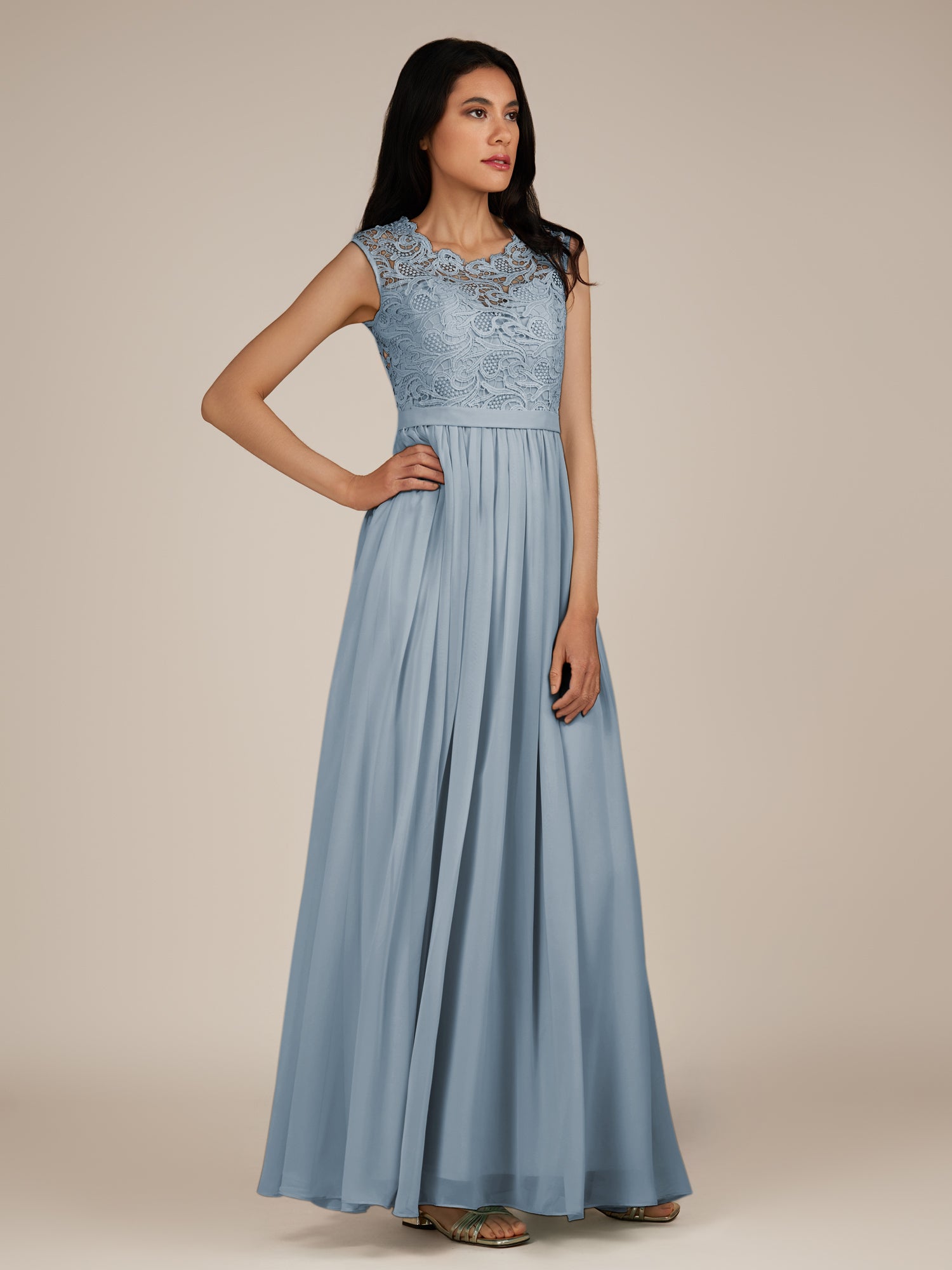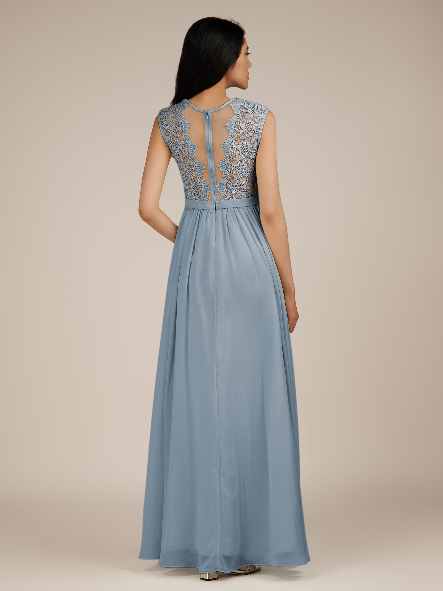 Niamh | Dusty Blue - A Line Illusion Neck Chiffon Long Bridesmaid Dress