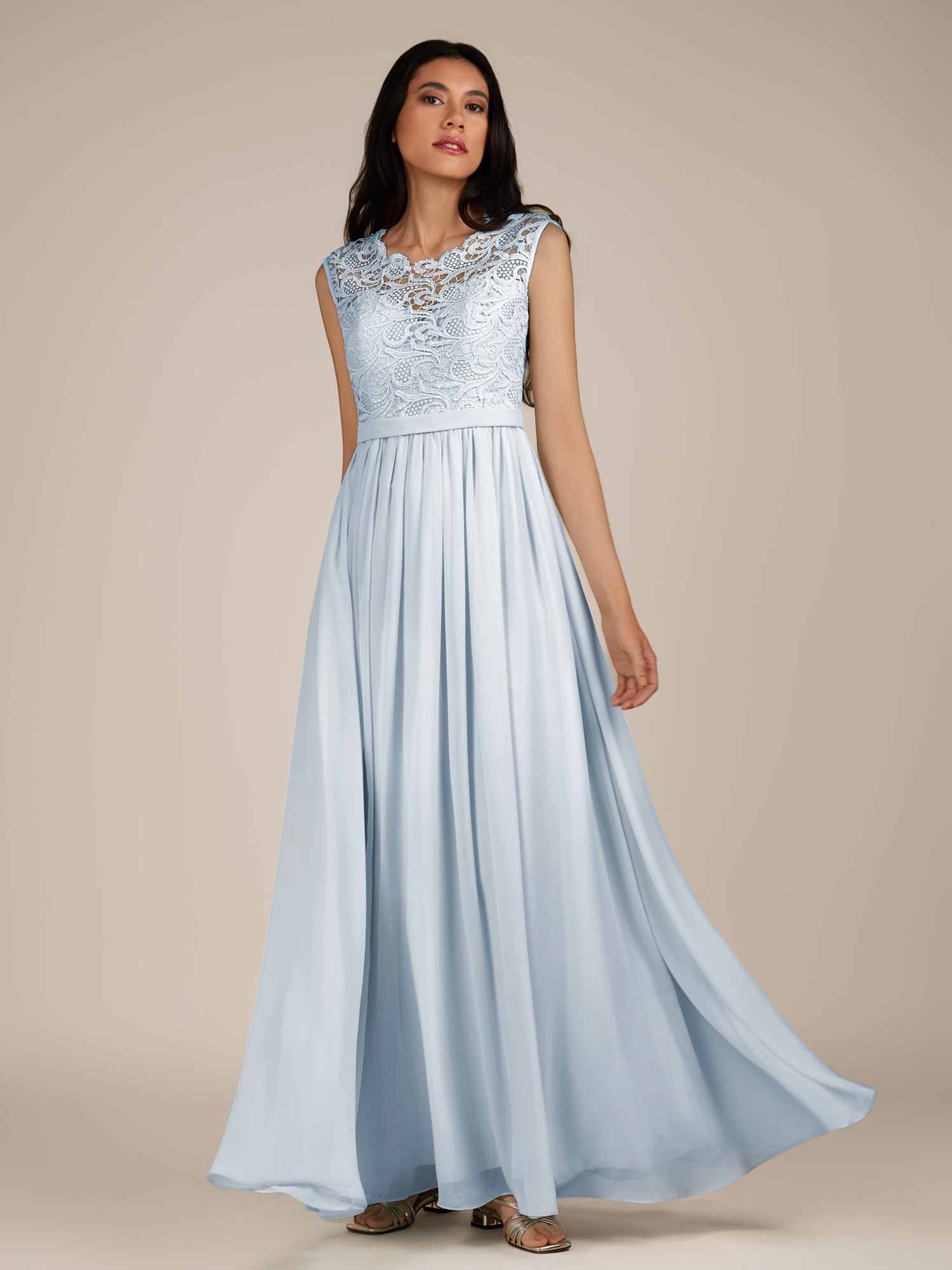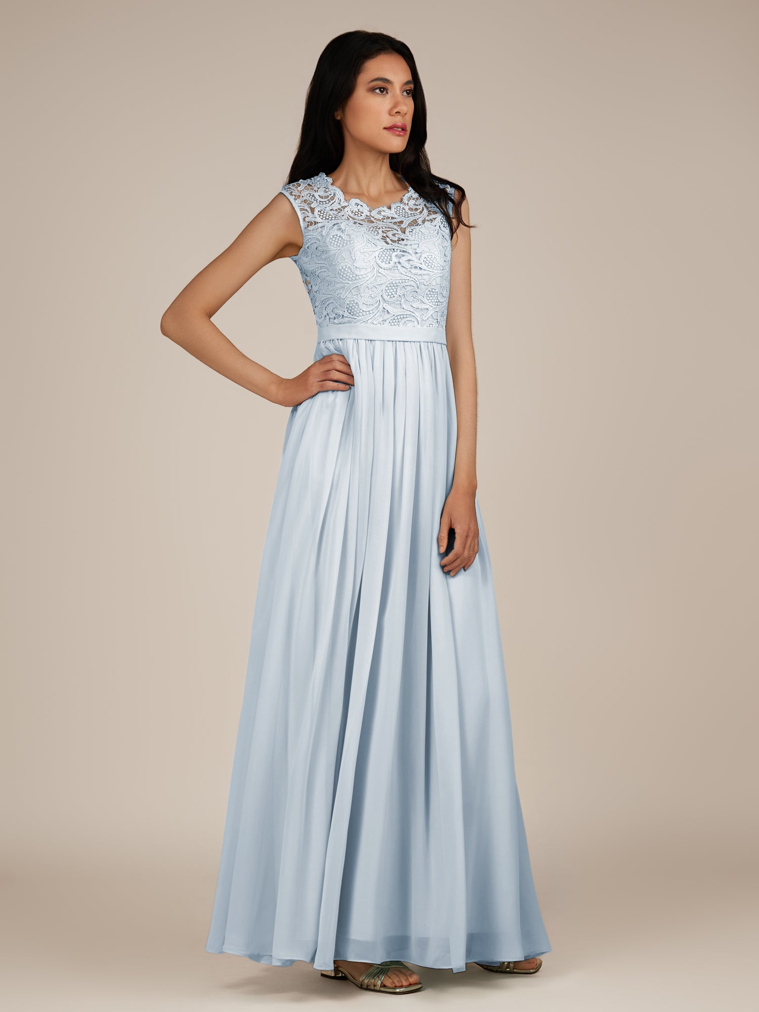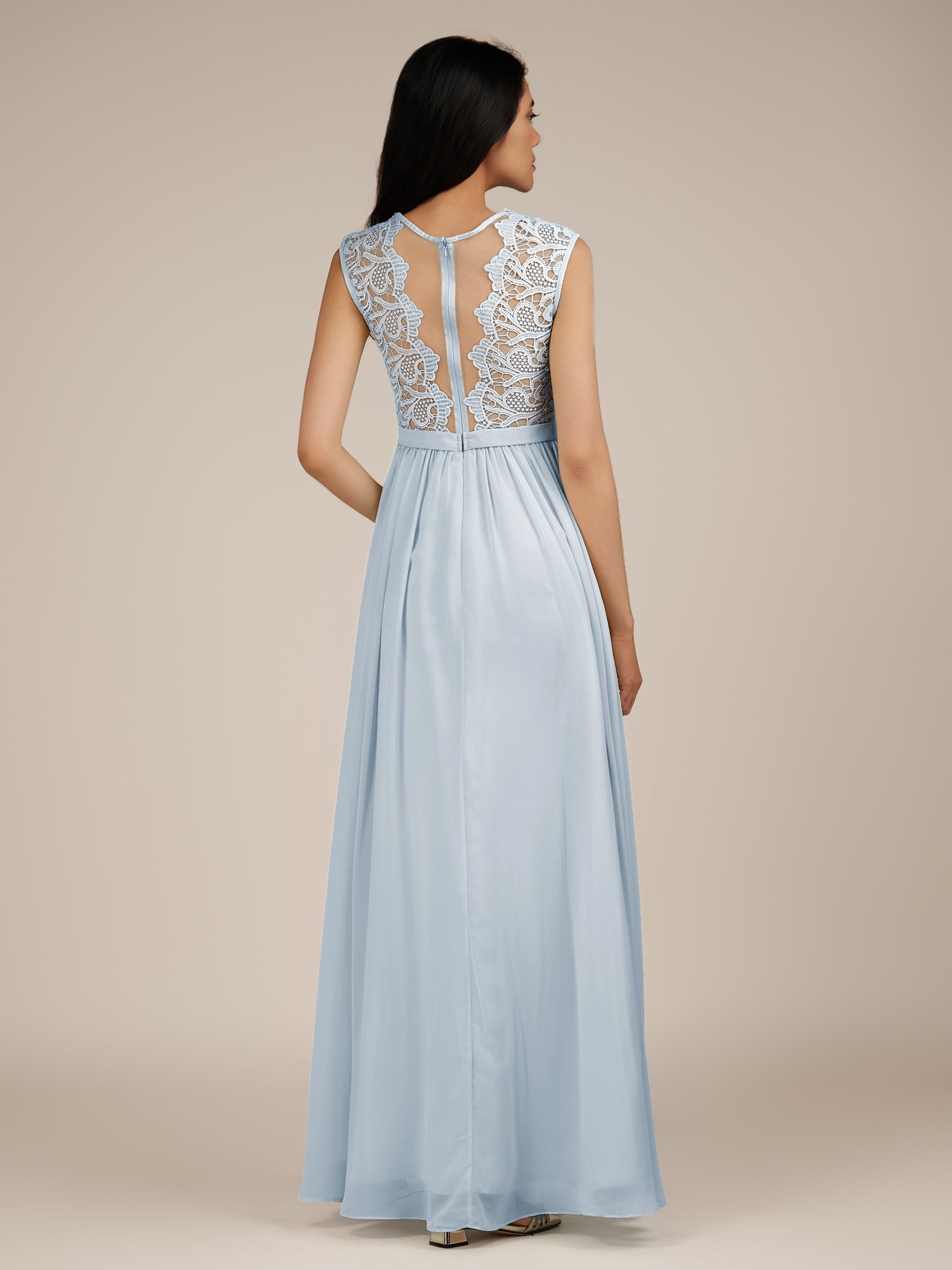 Niamh | Ice - A Line Illusion Neck Chiffon Long Bridesmaid Dress