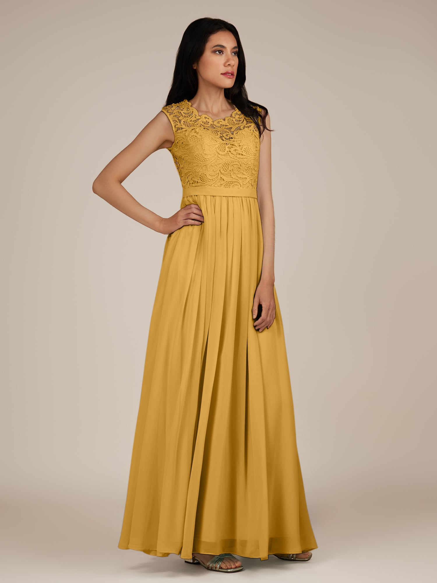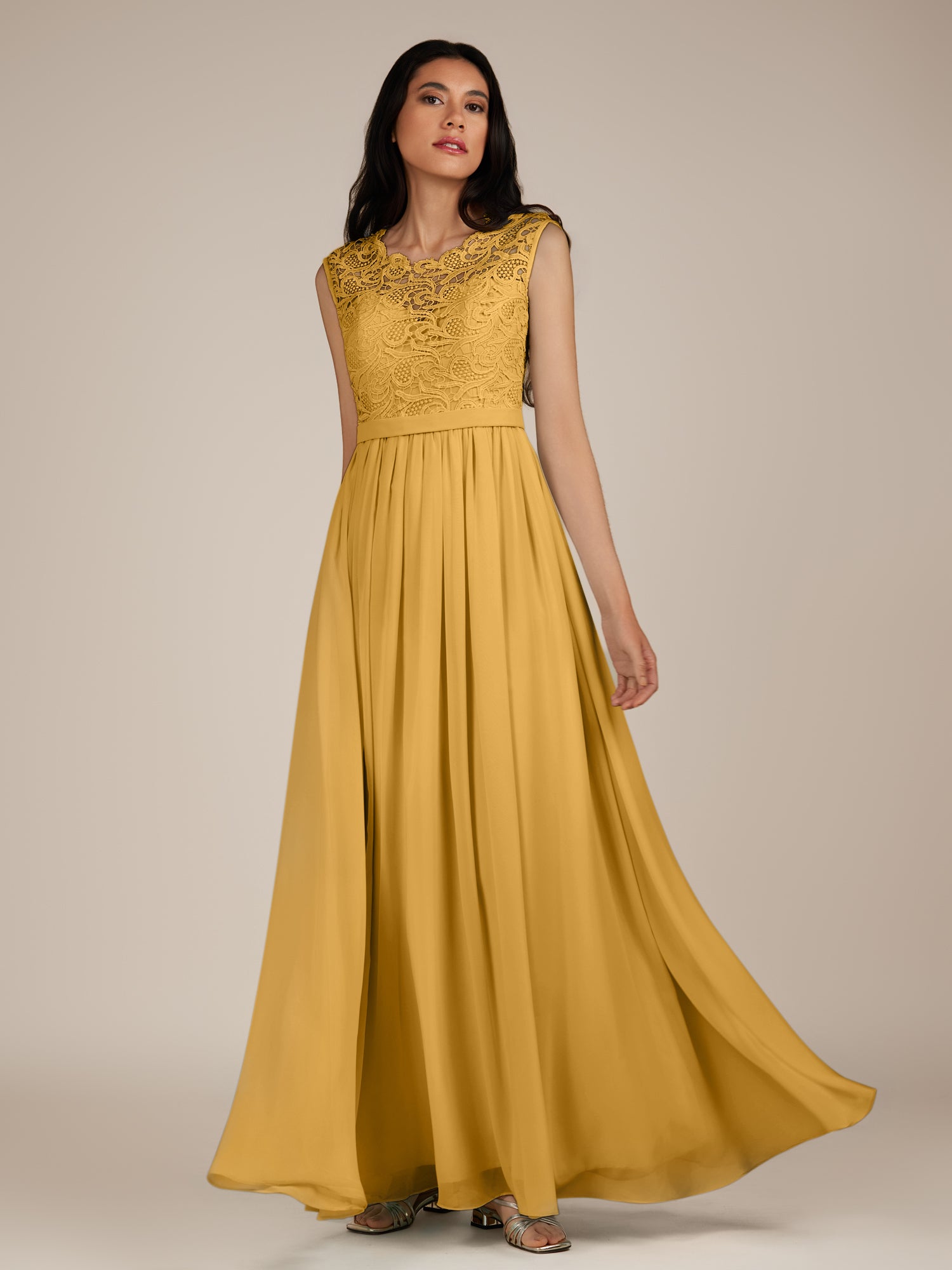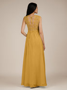 Niamh | Marigold - A Line Illusion Neck Chiffon Long Bridesmaid Dress