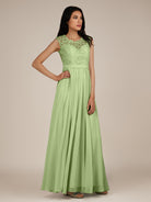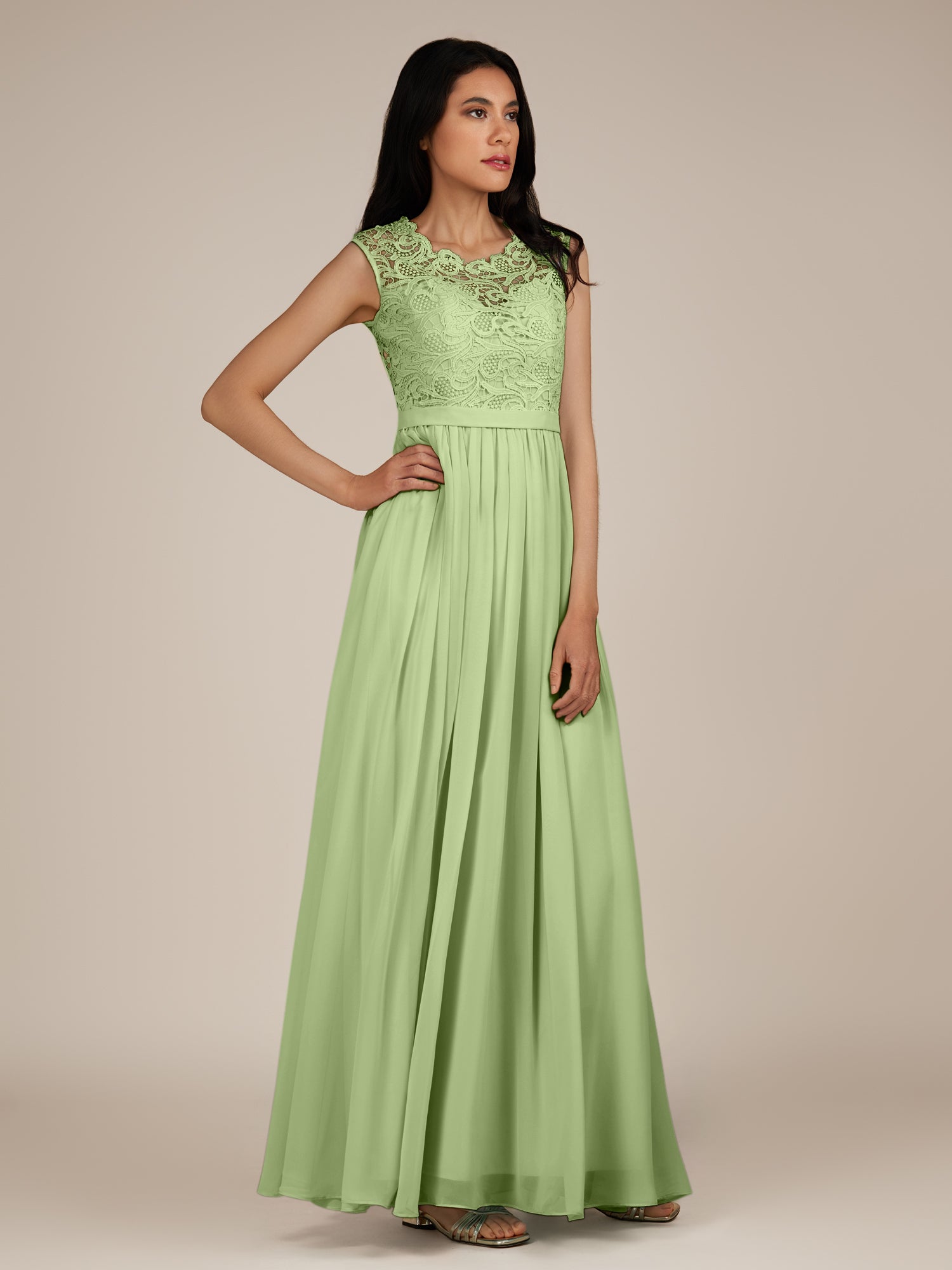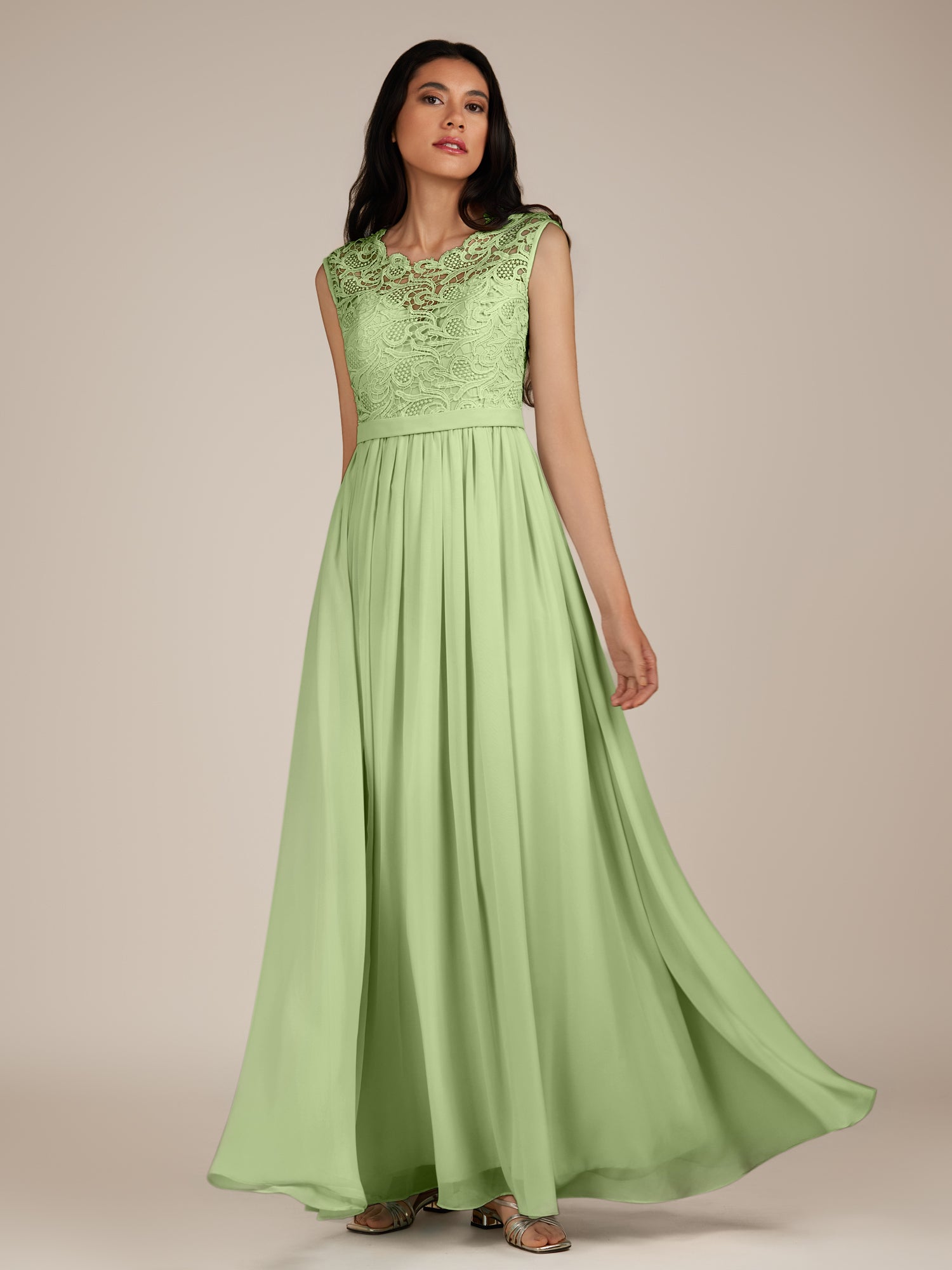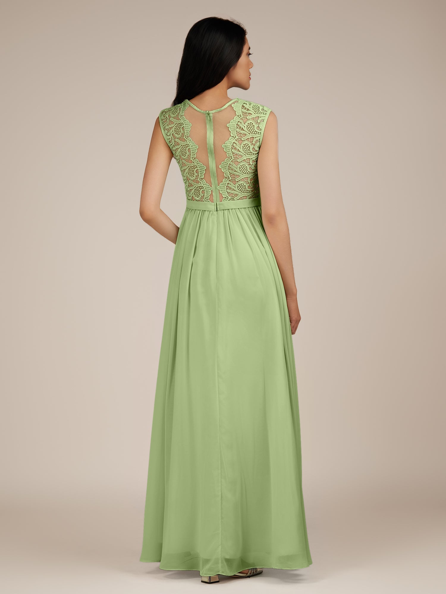 Niamh | Matcha - A Line Illusion Neck Chiffon Long Bridesmaid Dress