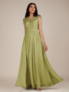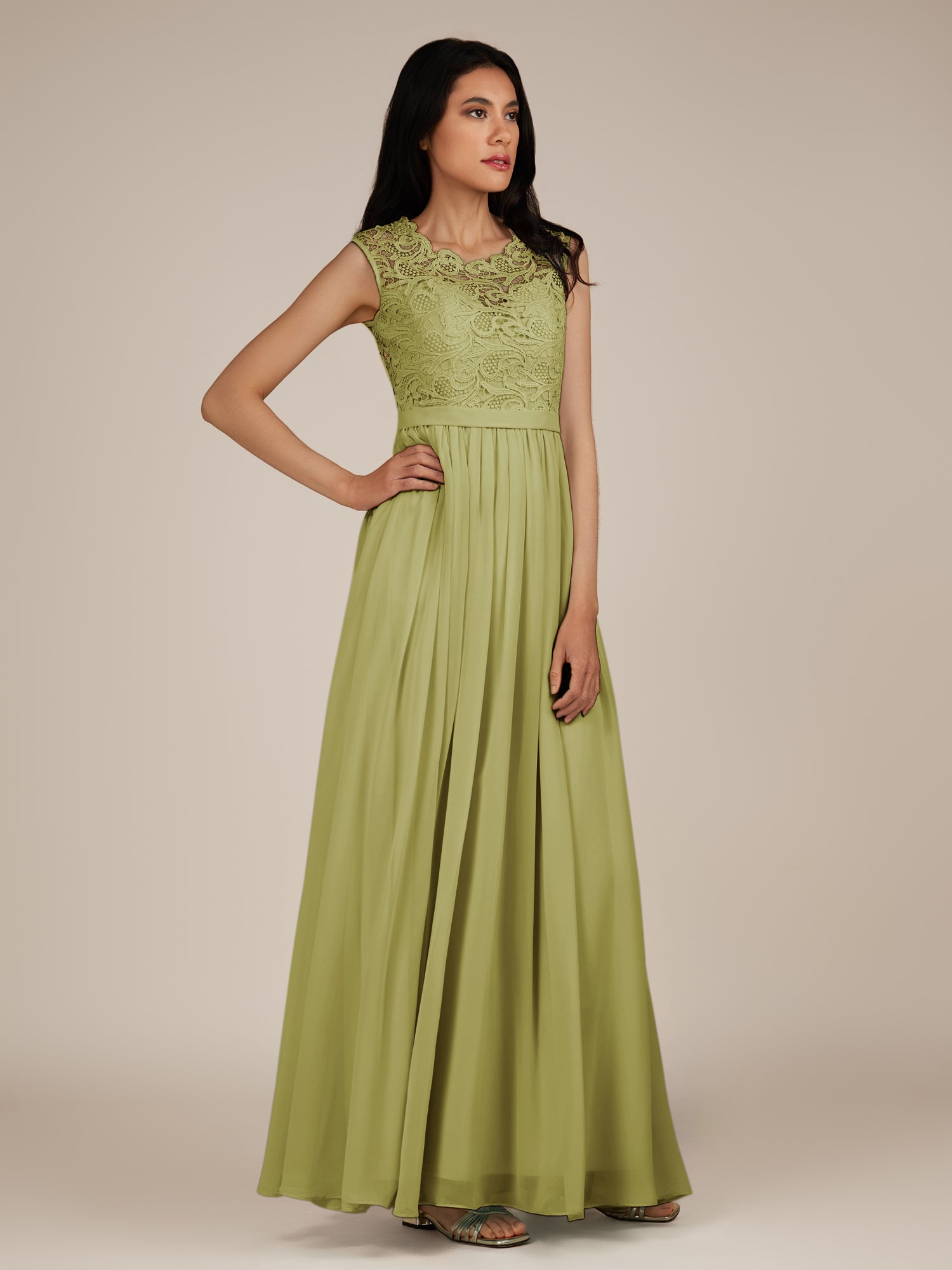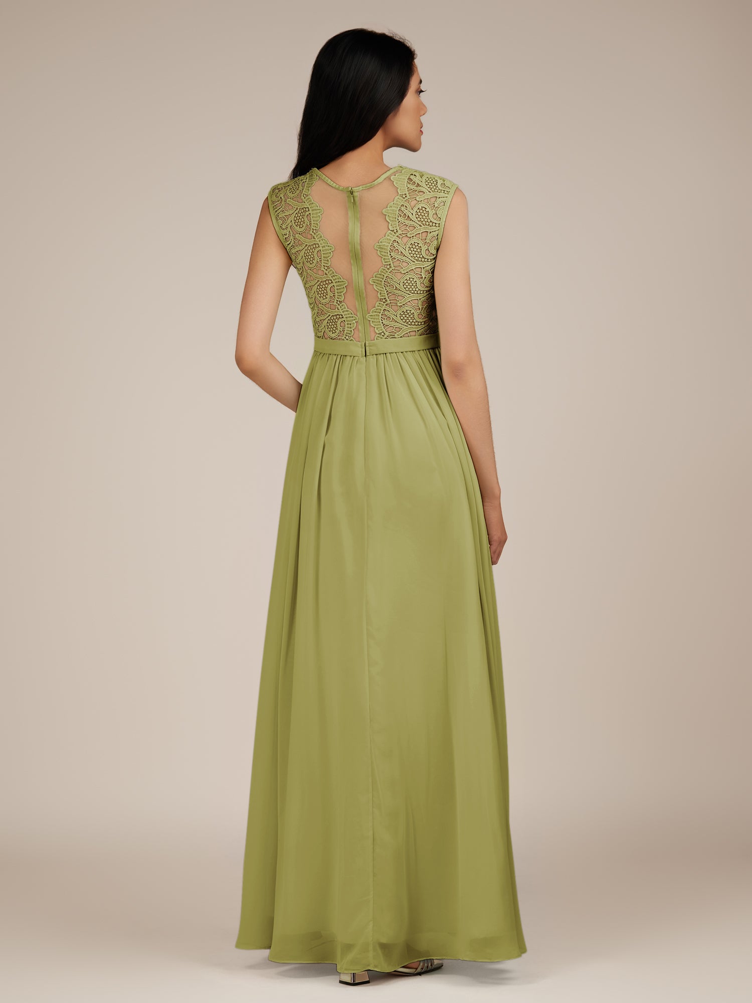 Niamh | Moss Green - A Line Illusion Neck Chiffon Long Bridesmaid Dress