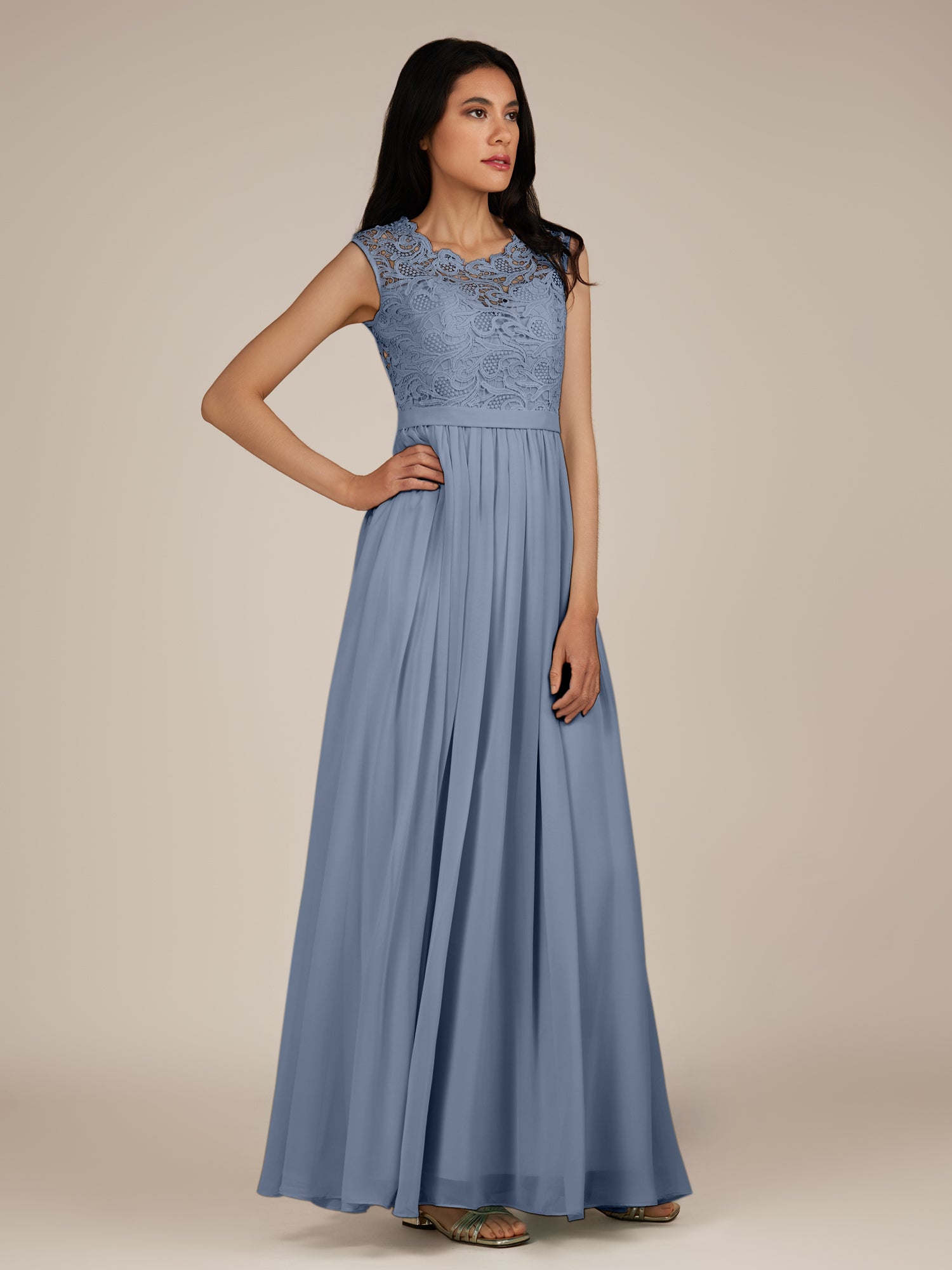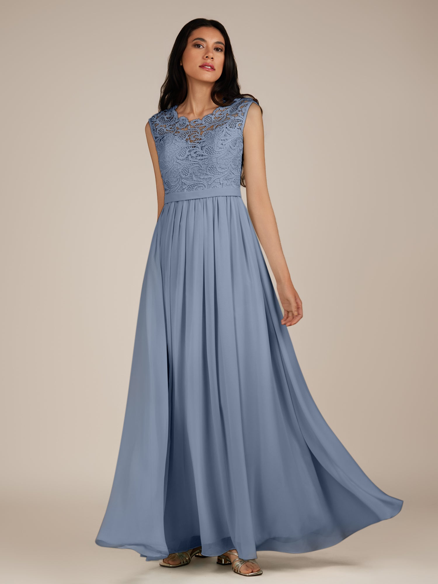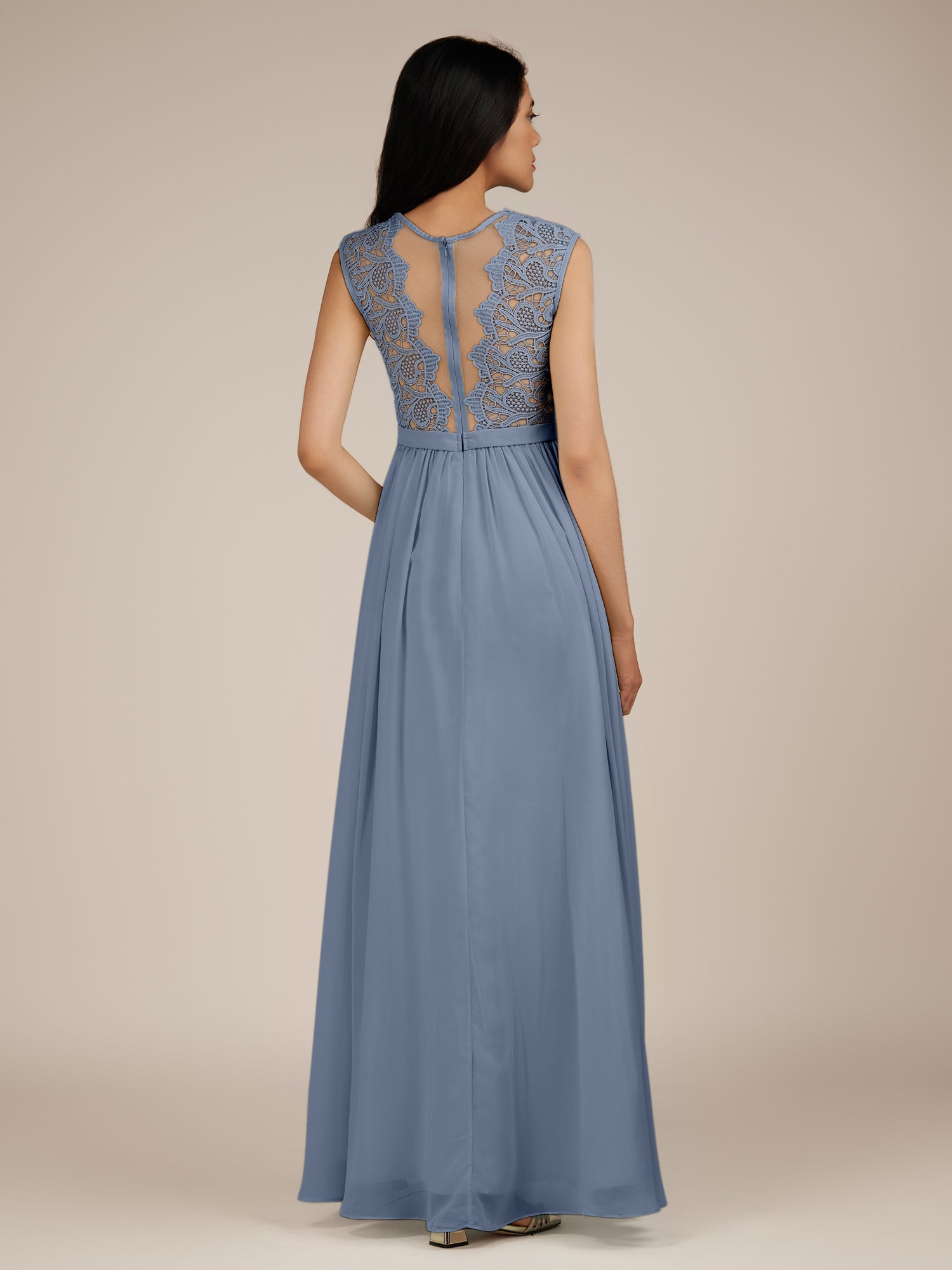 Niamh | Neptune - A Line Illusion Neck Chiffon Long Bridesmaid Dress