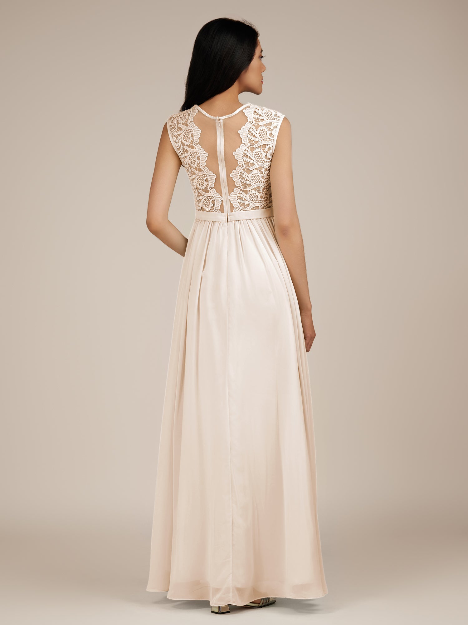 Niamh | Pale Blush - A Line Illusion Neck Chiffon Long Bridesmaid Dress