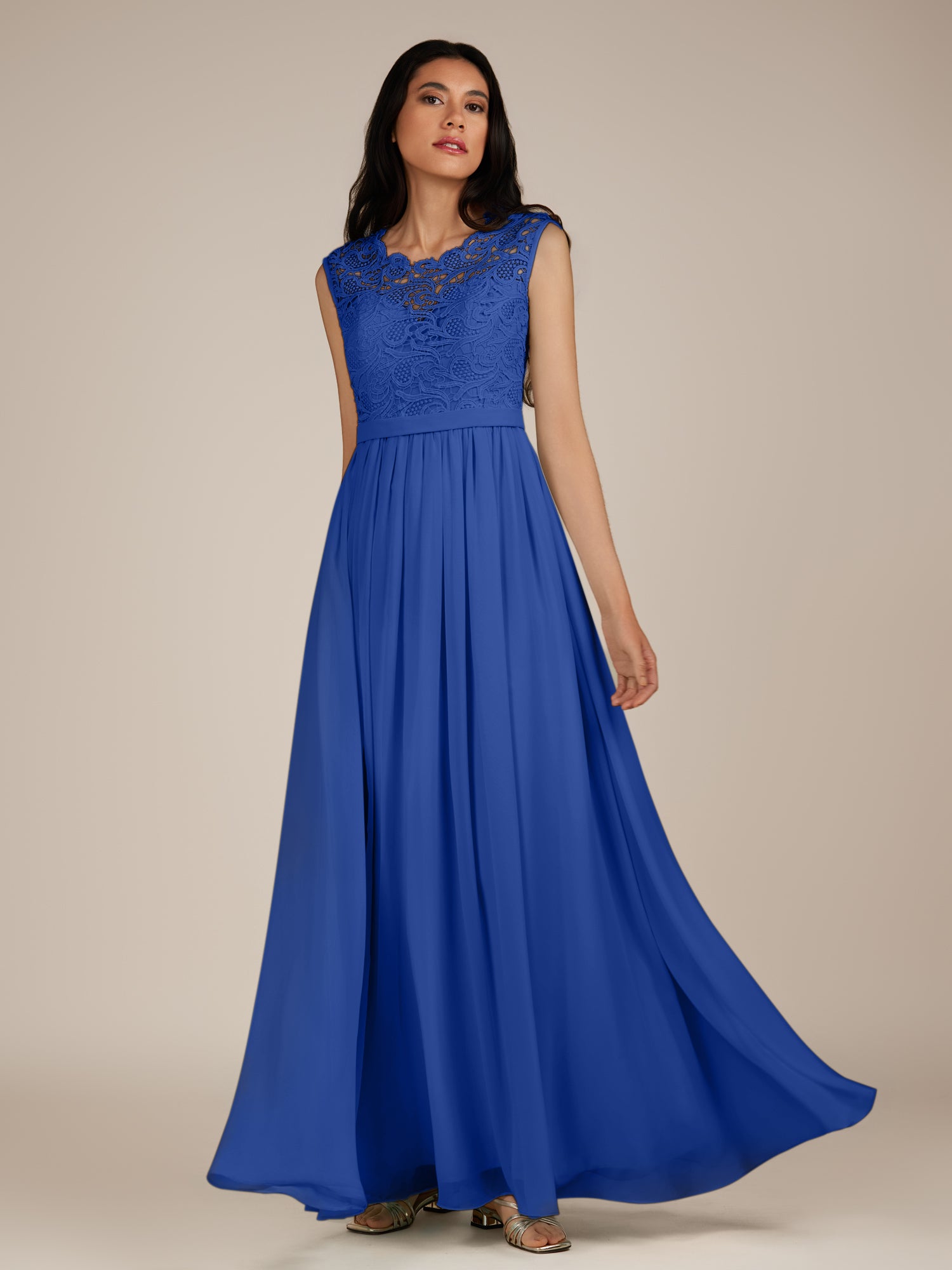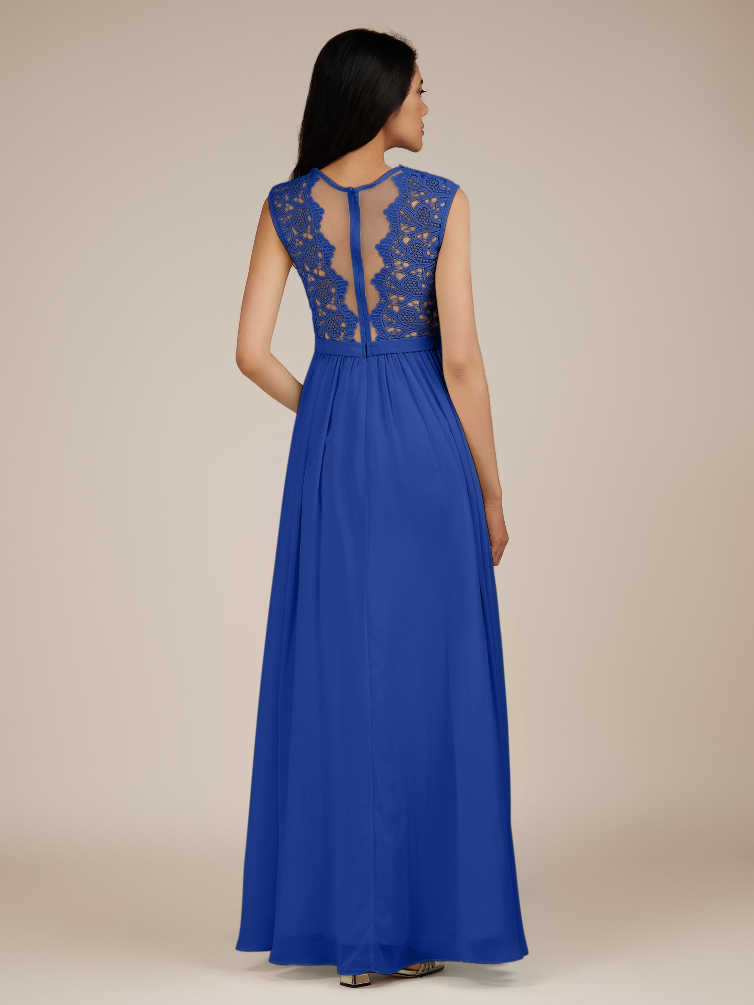 Niamh | Royal Blue - A Line Illusion Neck Chiffon Long Bridesmaid Dress