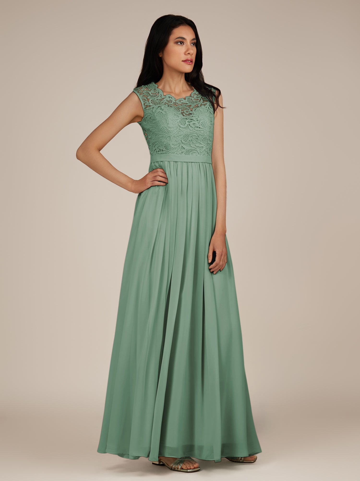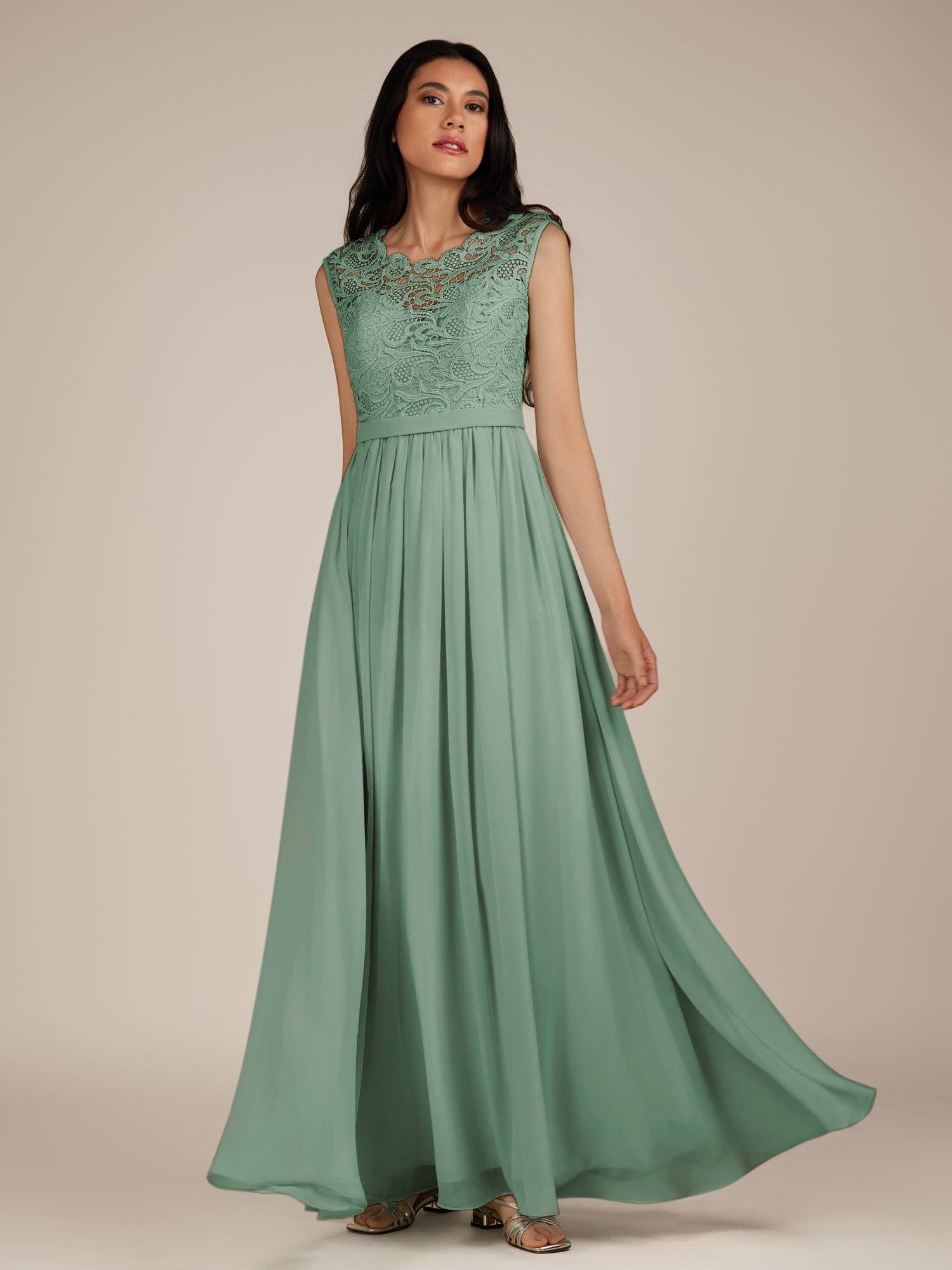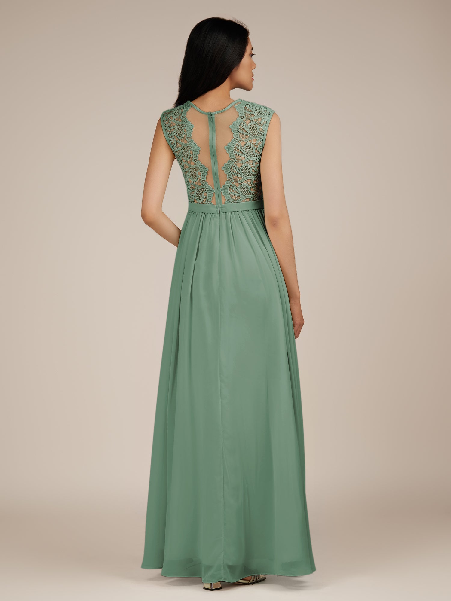 Niamh | Sea Glass - A Line Illusion Neck Chiffon Long Bridesmaid Dress