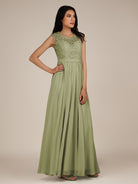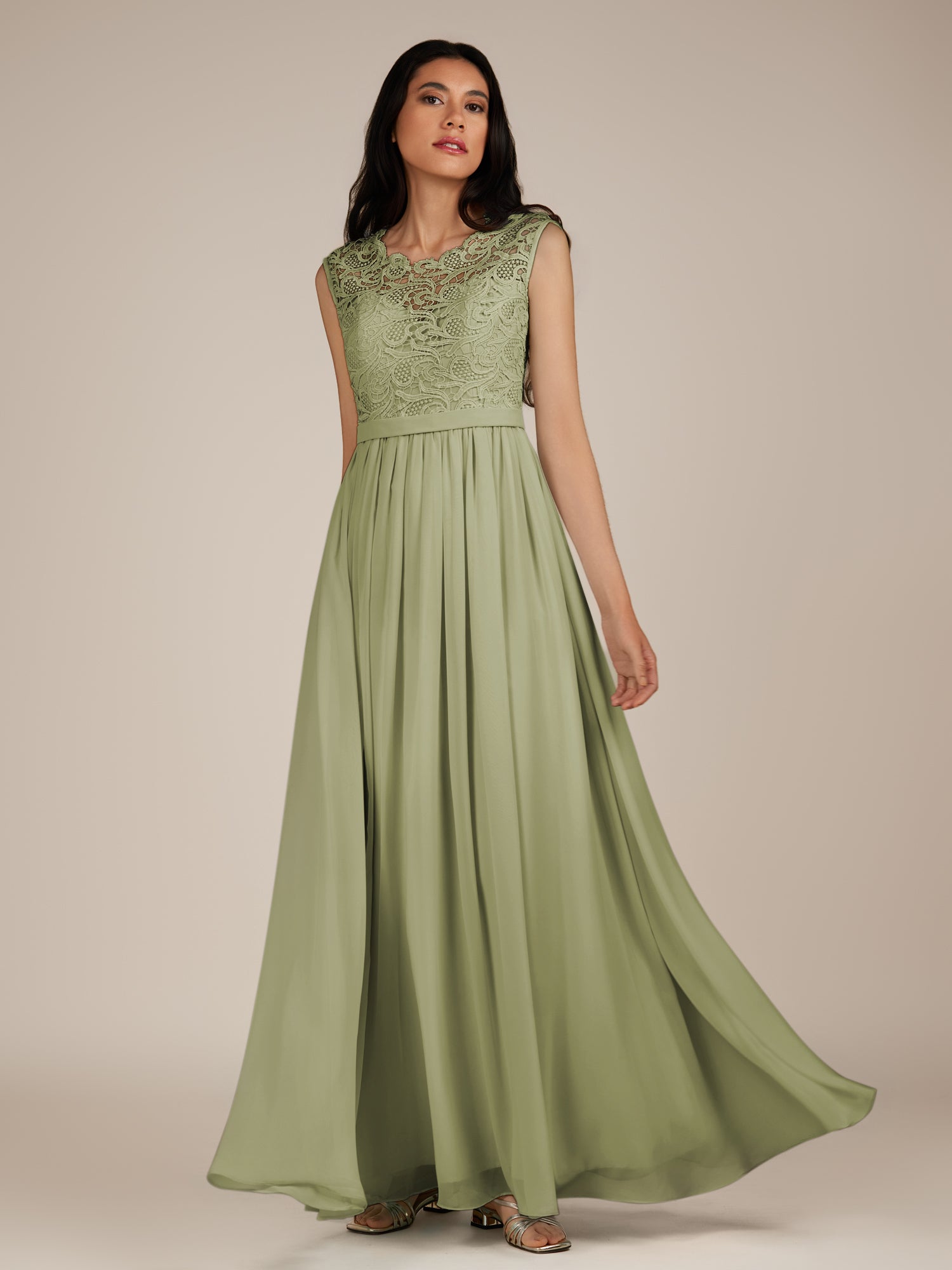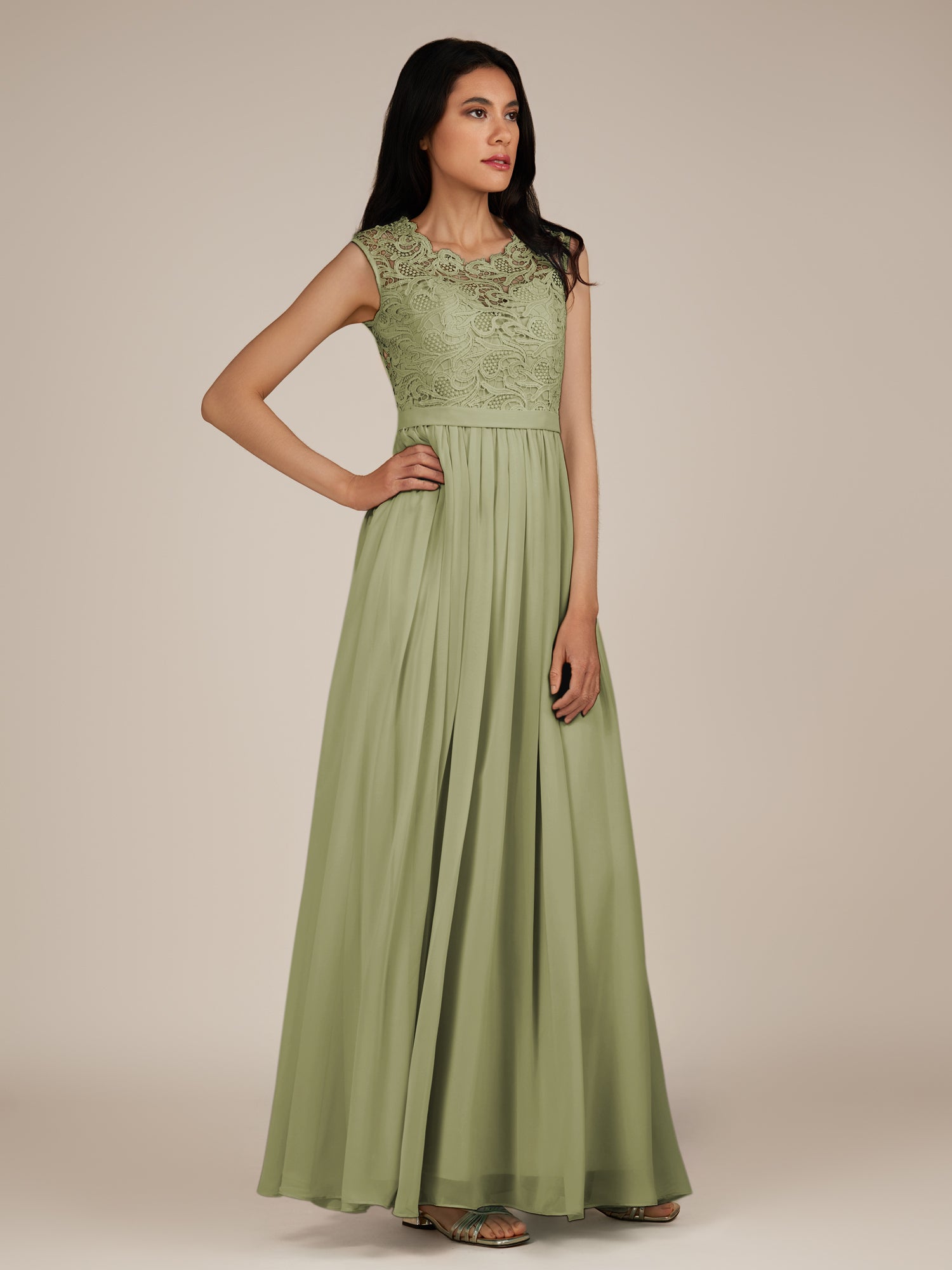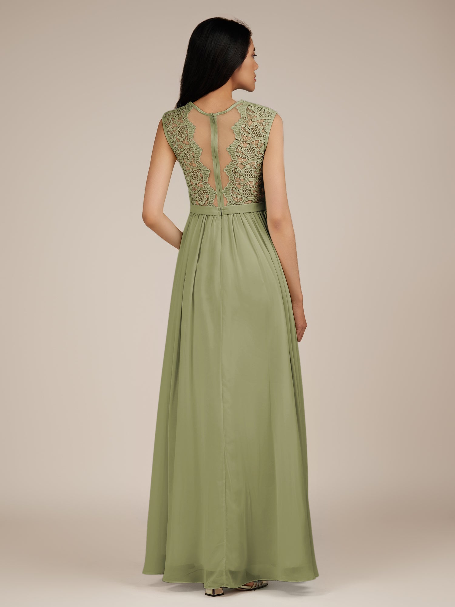 Niamh | Thyme - A Line Illusion Neck Chiffon Long Bridesmaid Dress