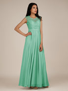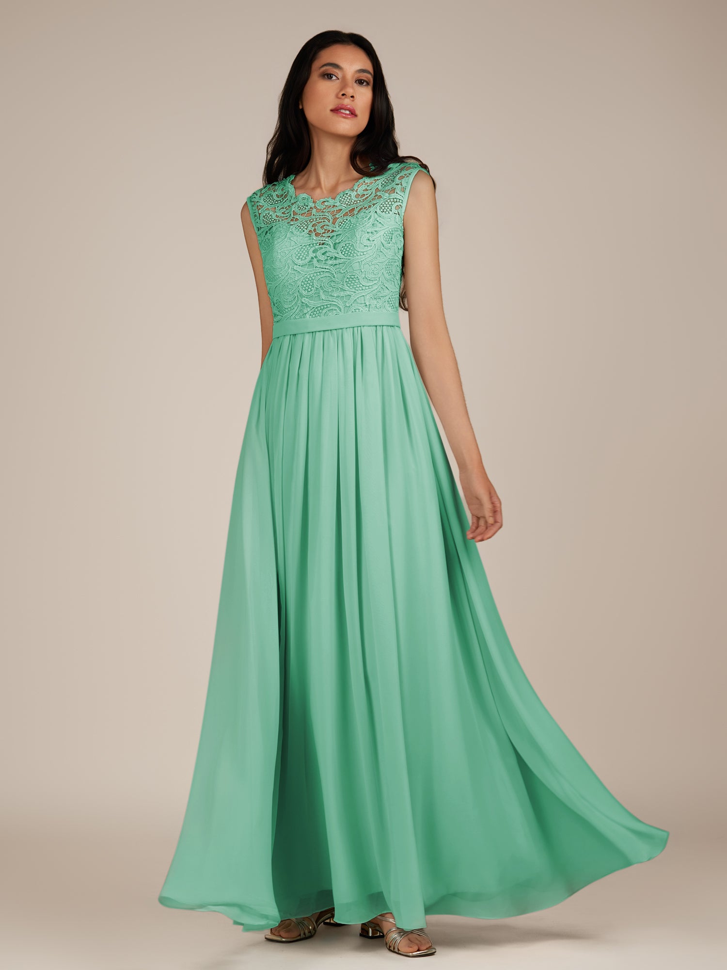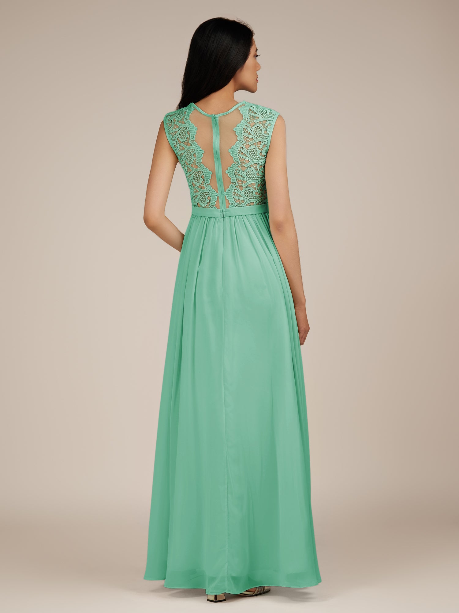 Niamh | Turquoise - A Line Illusion Neck Chiffon Long Bridesmaid Dress