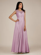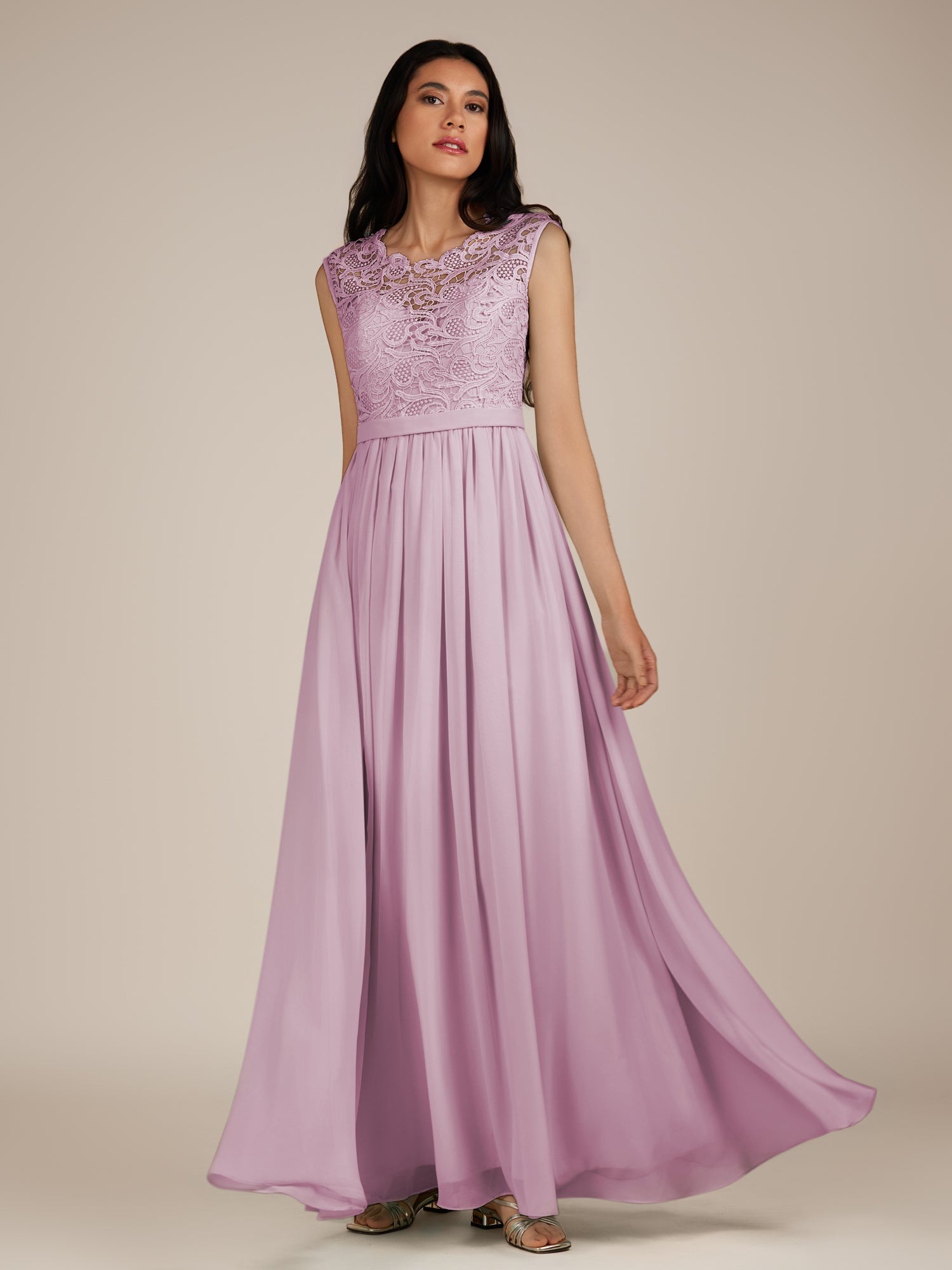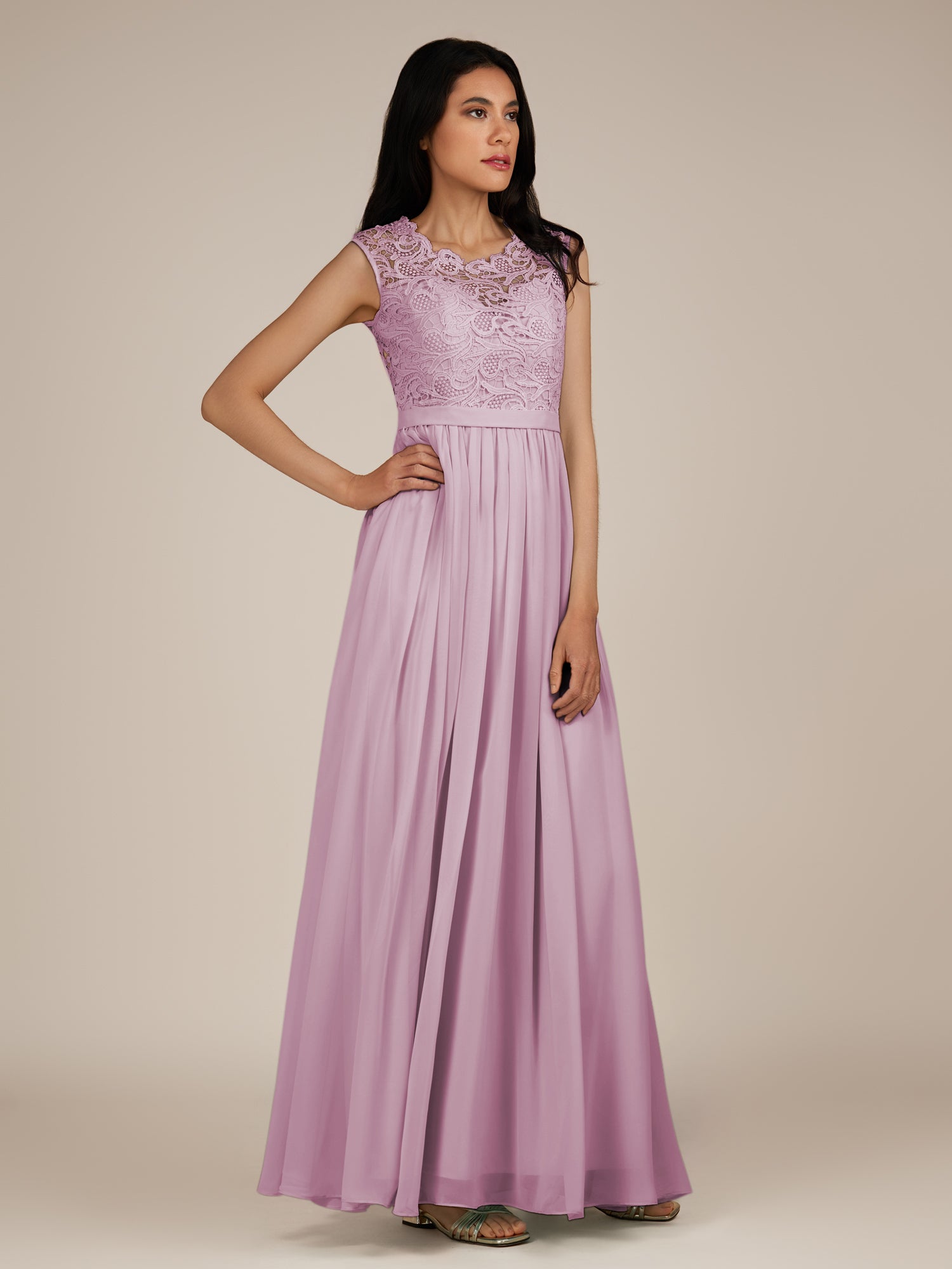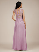 Niamh | Wisteria - A Line Illusion Neck Chiffon Long Bridesmaid Dress
