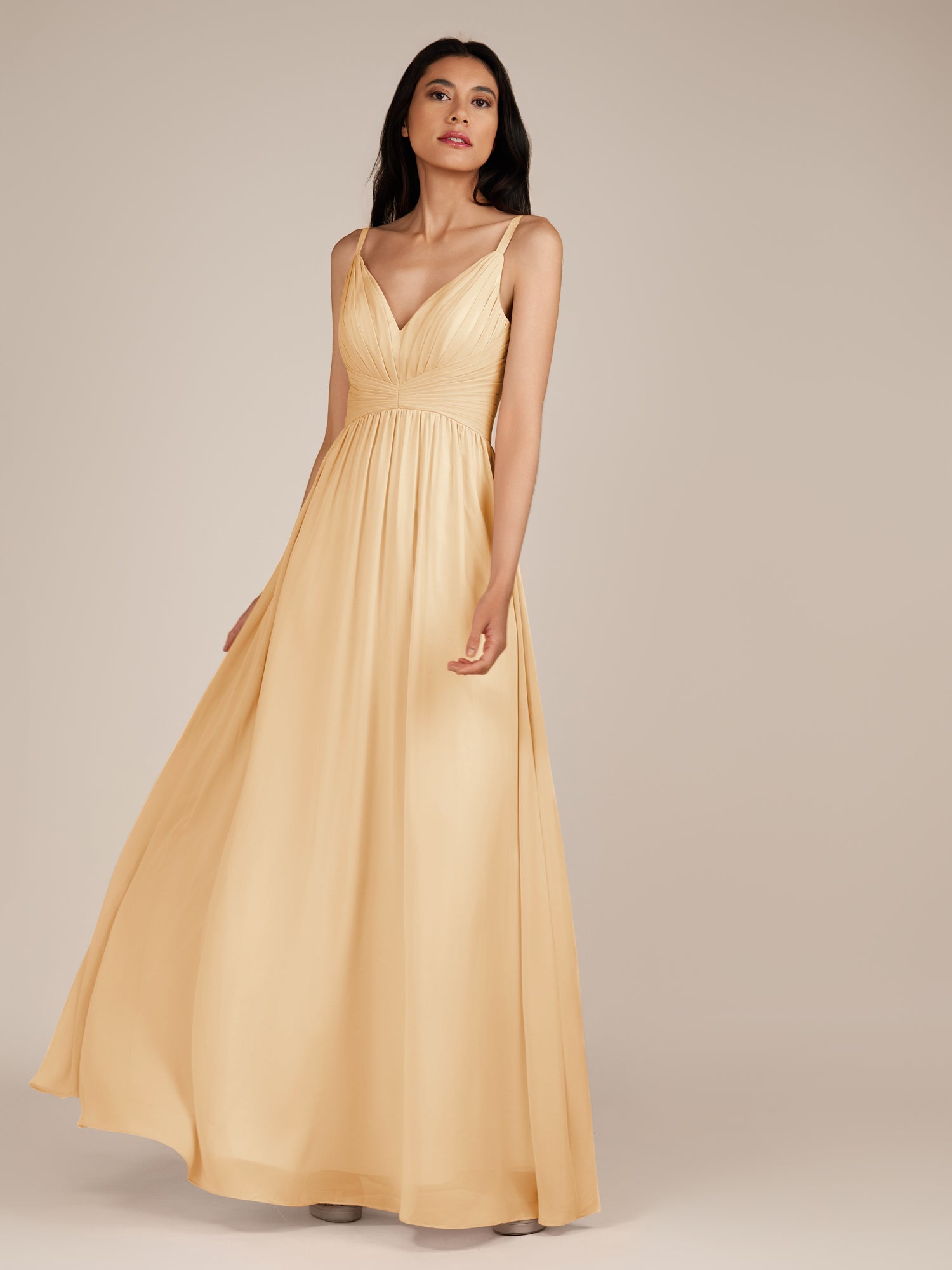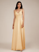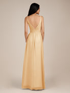 Ophelia | Golden Champagne - A Line Chiffon V Neck Long Bridesmaid Dress with Pleats